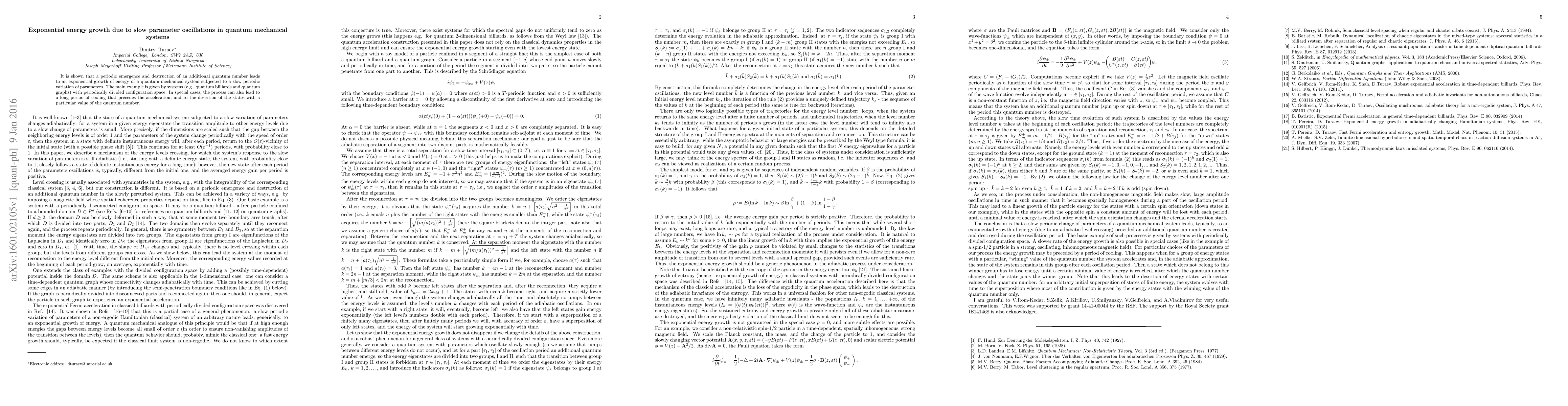It is shown that a periodic emergence and destruction of an additional quantum number leads to an exponential growth of energy of a quantum mechanical system subjected to a slow periodic variation of parameters. The main example is given by systems (e.g., quantum billiards and quantum graphs) with periodically divided configuration space. In special cases, the process can also lead to a long period of cooling that precedes the acceleration, and to the desertion of the states with a particular value of the quantum number.