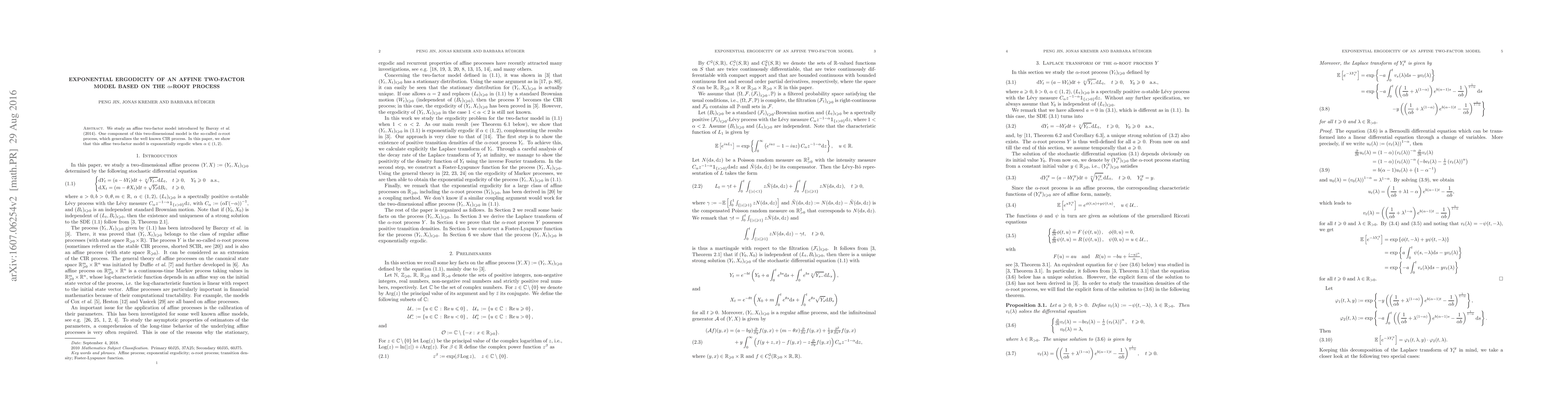 An affine two-factor model is exponentially ergodic when the α-root process has a stability parameter between 1 and 2, according to this study.
