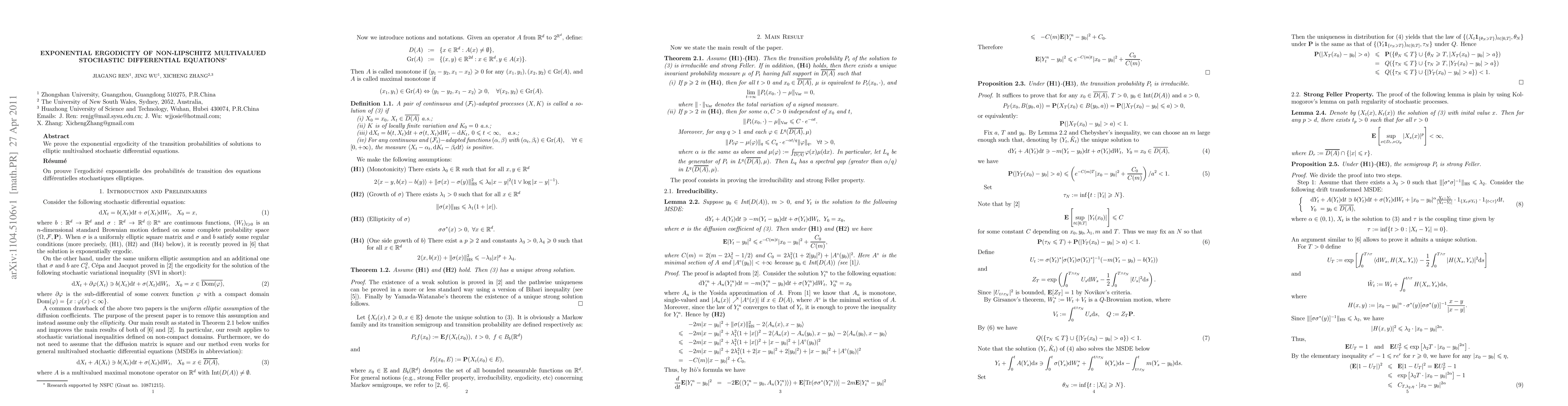 We prove the exponential ergodicity of the transition probabilities of solutions to elliptic multivalued stochastic differential equations.
