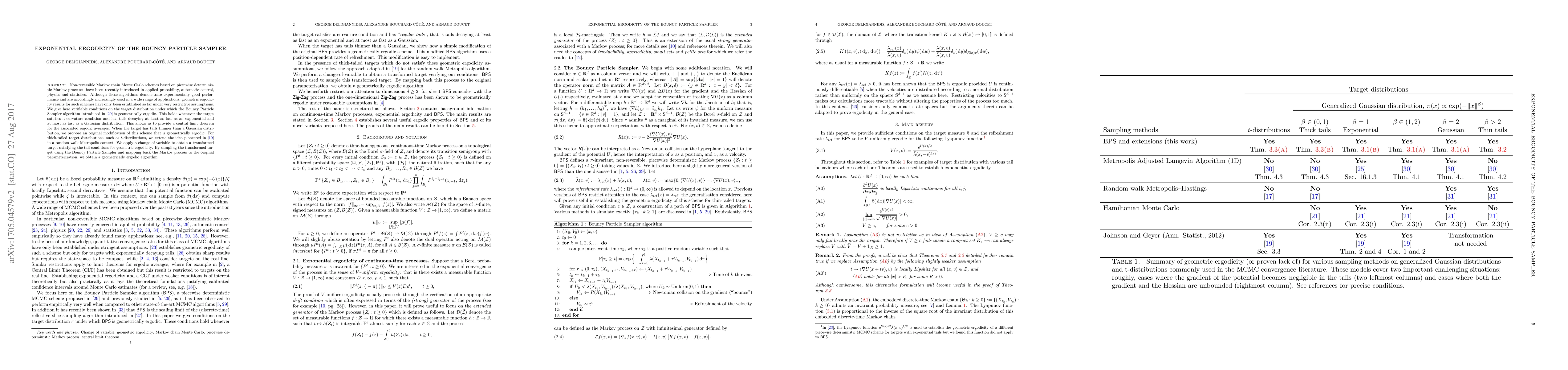 This paper establishes verifiable conditions for the geometric ergodicity of the Bouncy Particle Sampler algorithm, ensuring it works under a range of target distributions, including those with exponential and Gaussian-like decay. It also introduces modifications for distributions with heavier tails, such as $t$-distributions, to maintain geometric ergodicity.