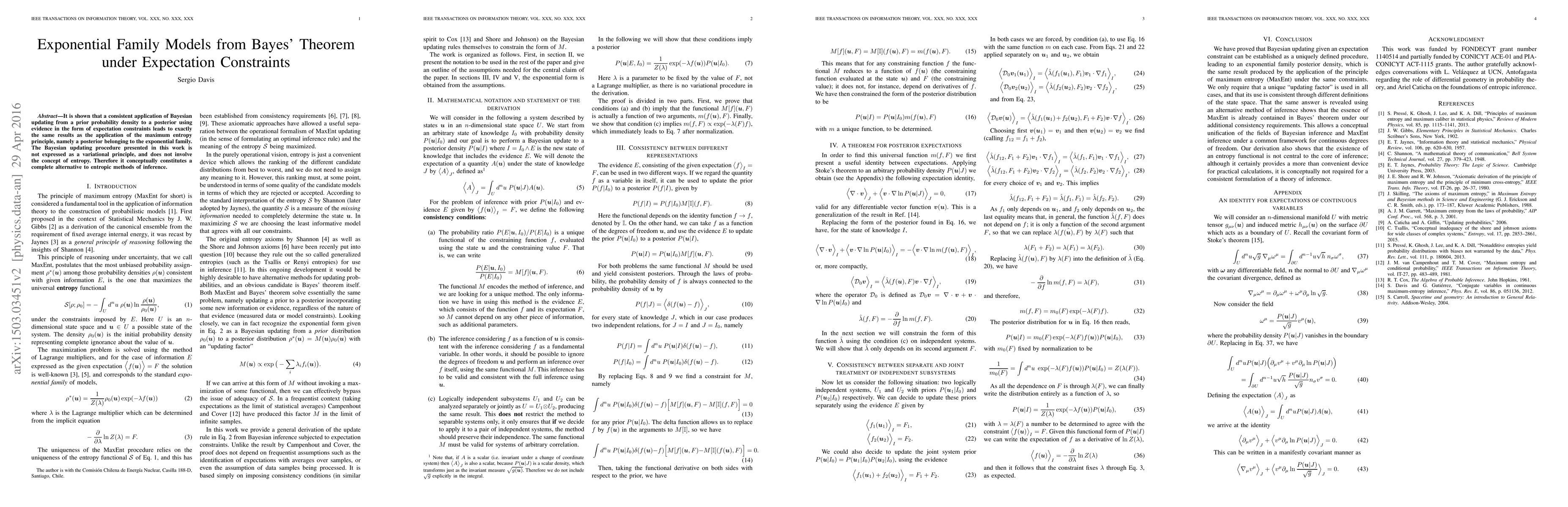 This paper demonstrates that Bayesian updating under expectation constraints yields posteriors in the exponential family, equivalent to the maximum entropy principle, without relying on entropy or variational methods, offering a distinct Bayesian approach to inference.