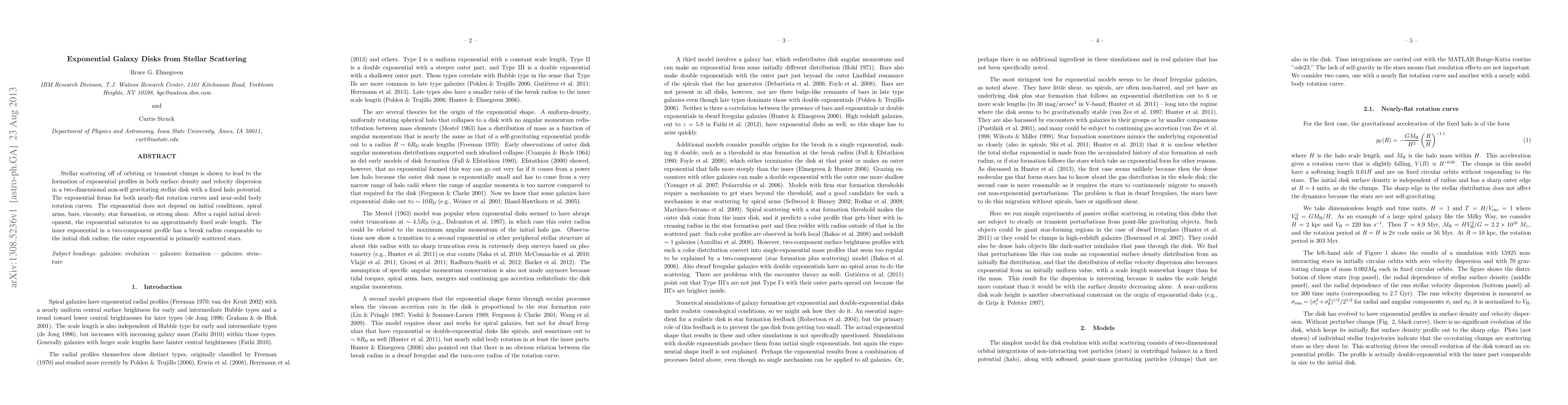 Stellar scattering off of orbiting or transient clumps is shown to lead to the formation of exponential profiles in both surface density and velocity dispersion in a two-dimensional non-self gravitating stellar disk with a fixed halo potential. The exponential forms for both nearly-flat rotation curves and near-solid body rotation curves. The exponential does not depend on initial conditions, spiral arms, bars, viscosity, star formation, or strong shear. After a rapid initial development, the exponential saturates to an approximately fixed scale length. The inner exponential in a two-component profile has a break radius comparable to the initial disk radius; the outer exponential is primarily scattered stars.
