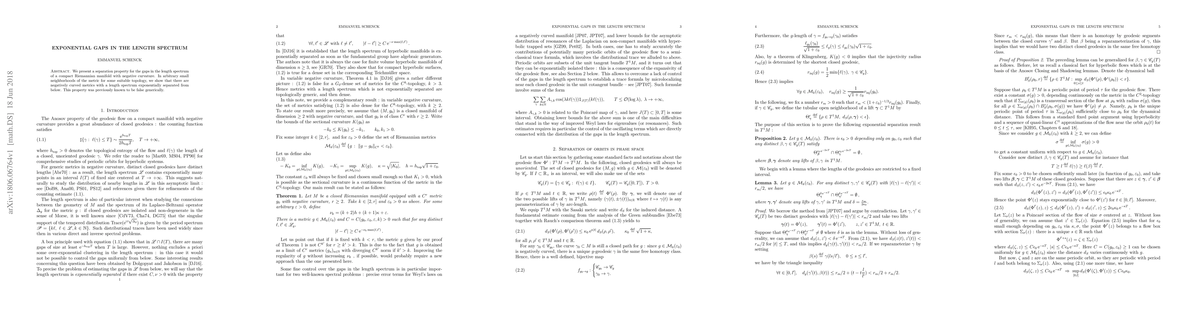 This paper demonstrates that in compact Riemannian manifolds with negative curvature, there exist metrics with exponentially large gaps in their length spectrum, a property previously thought to be false in general. This finding reveals a separation property in the length spectrum of such manifolds.
