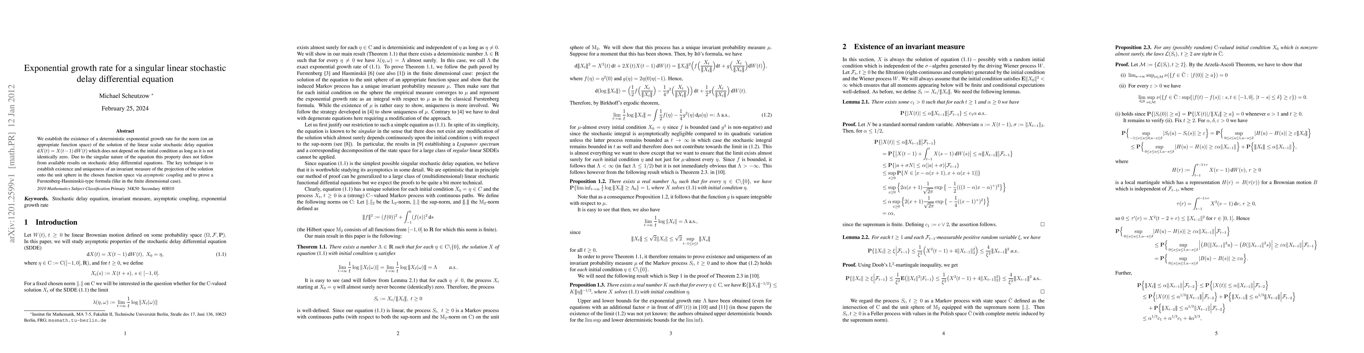 We establish the existence of a deterministic exponential growth rate for the norm (on an appropriate function space) of the solution of the linear scalar stochastic delay equation dX(t) = X(t-1) dW(t) which does not depend on the initial condition as long as it is not identically zero. Due to the singular nature of the equation this property does not follow from available results on stochastic delay differential equations. The key technique is to establish existence and uniqueness of an invariant measure of the projection of the solution onto the unit sphere in the chosen function space via asymptotic coupling and to prove a Furstenberg-Hasminskii-type formula (like in the finite dimensional case).