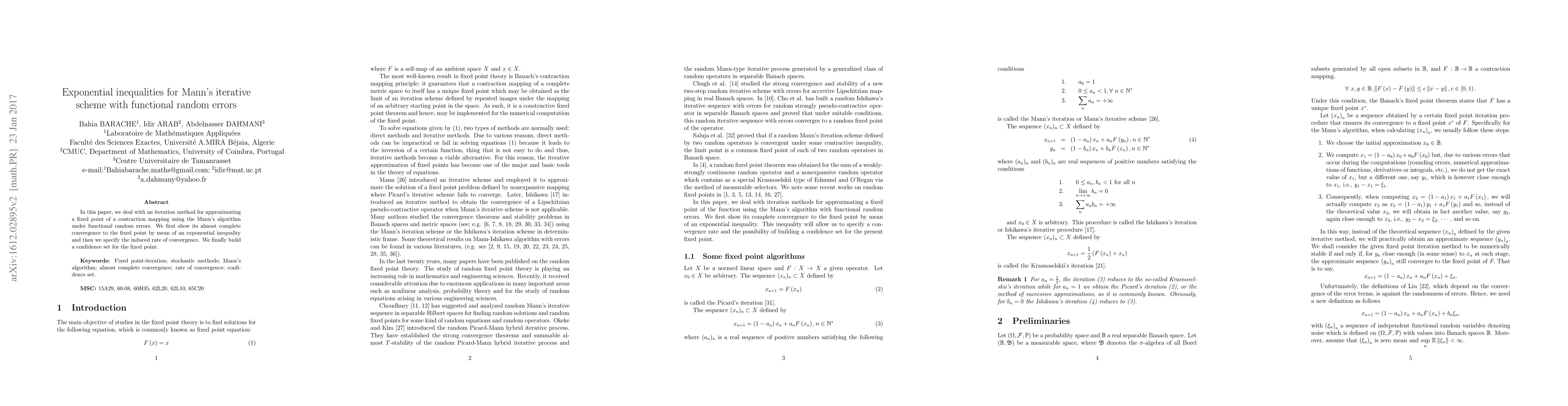In this work, we deal with an iteration method for approximating a fixed point of a contraction mapping using the Mann's algorithm under functional random errors. We first show its almost complete convergence to the fixed point by mean of an exponential inequality and then we specify the induced rate of convergence. We finally build a confidence set for the fixed point.