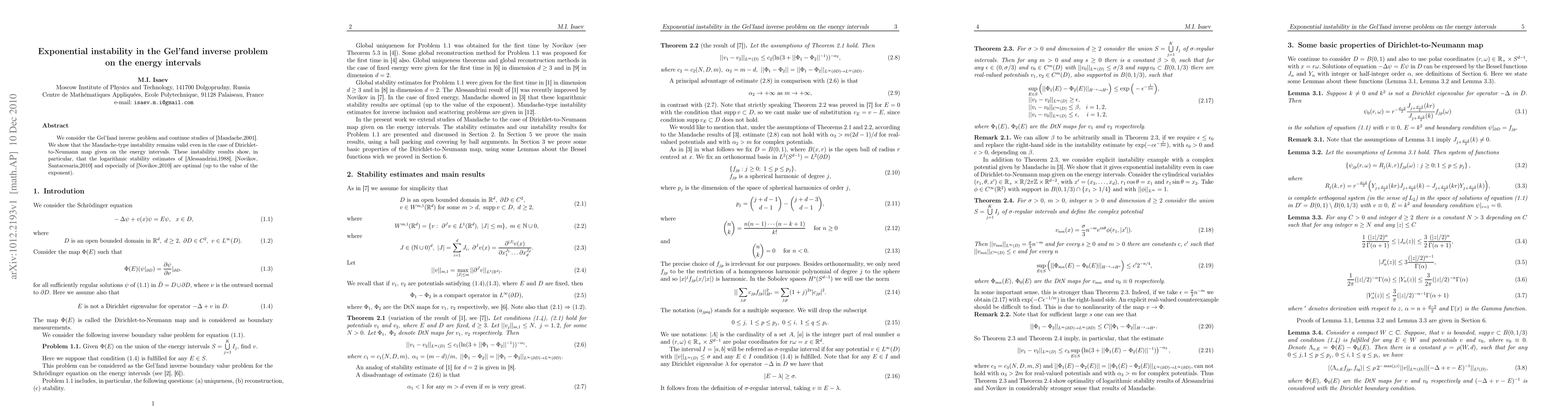 We consider the Gel'fand inverse problem and continue studies of [Mandache,2001]. We show that the Mandache-type instability remains valid even in the case of Dirichlet-to-Neumann map given on the energy intervals. These instability results show, in particular, that the logarithmic stability estimates of [Alessandrini,1988], [Novikov,Santacesaria,2010] and especially of [Novikov,2010] are optimal (up to the value of the exponent).