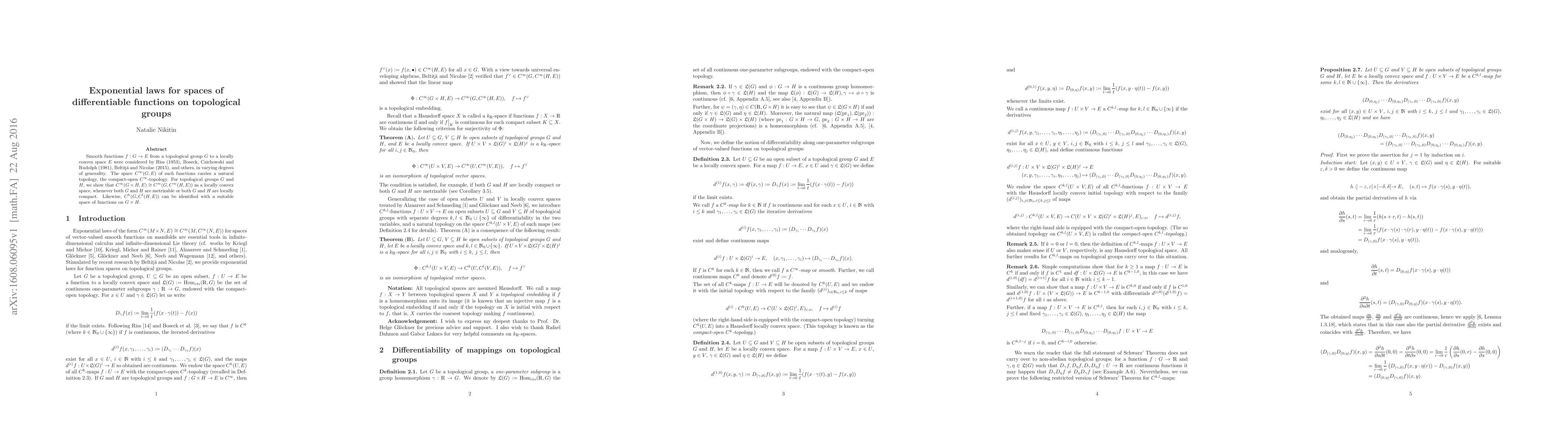 This paper establishes isomorphisms between spaces of differentiable functions on topological groups, showing that certain function spaces can be identified with spaces of functions on the product group, under specific conditions such as metrizability or local compactness.