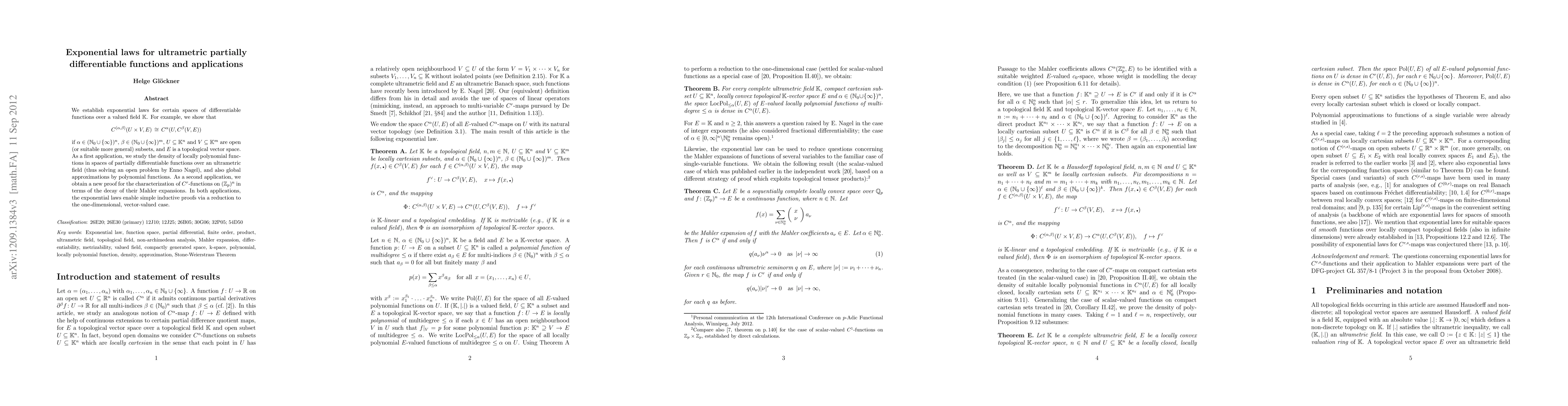 We establish exponential laws for certain spaces of differentiable functions over a valued field K. For example, we show that the topological vector spaces C^{r,s}(U x V,E) and C^r(U,C^s(V,E)) are isomorphic if U and V are open subsets of K^n and K^m, respectively, E is a topological K-vector space, and r,s are degrees of differentiability. As a first application, we study the density of locally polynomial functions in spaces of partially differentiable functions over an ultrametric field (thus solving an open problem by E. Nagel), and also global approximations by polynomial functions. As a second application, we obtain a new proof for the characterization of C^r-functions on powers Z_p^n of the p-adic integers in terms of the decay of their Mahler expansions. In both applications, the exponential laws enable simple inductive proofs via a reduction to the one-dimensional, vector-valued case.
