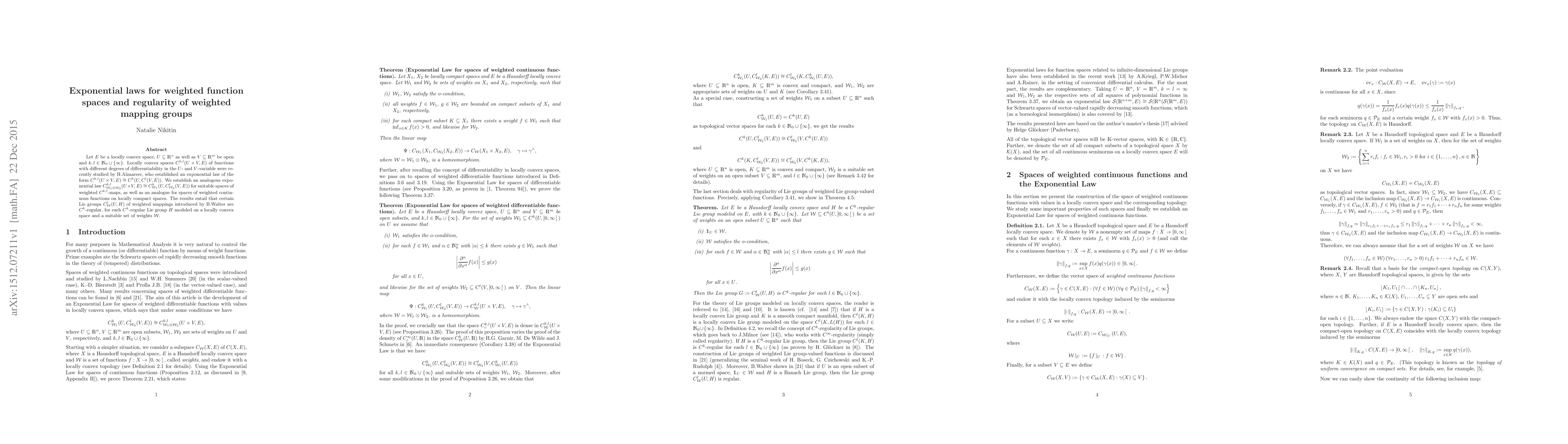 This paper establishes an exponential law for weighted function spaces, showing that weighted $C^{k,l}$-maps can be expressed as $C^k$ maps into $C^l$ maps with specific weights. The results also demonstrate the $C^k$-regularity of certain weighted mapping groups, extending previous findings on regularity in unweighted function spaces.
