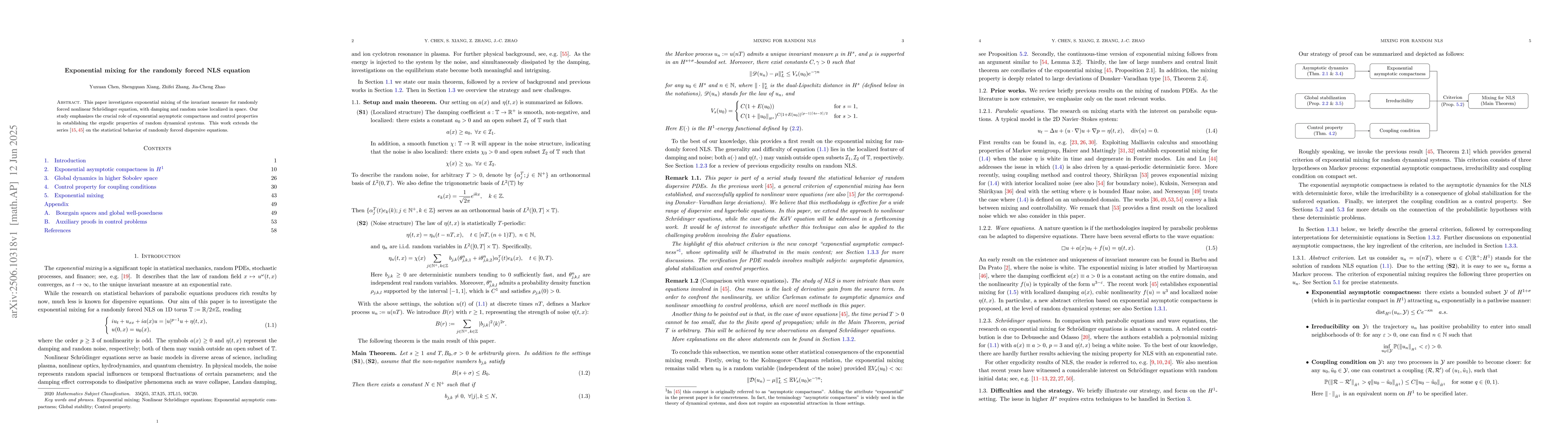 The paper introduces and applies advanced techniques from ergodic theory and random dynamical systems to prove exponential mixing properties for a class of stochastic PDEs, specifically the randomly forced NLS equation with damping and localized noise.