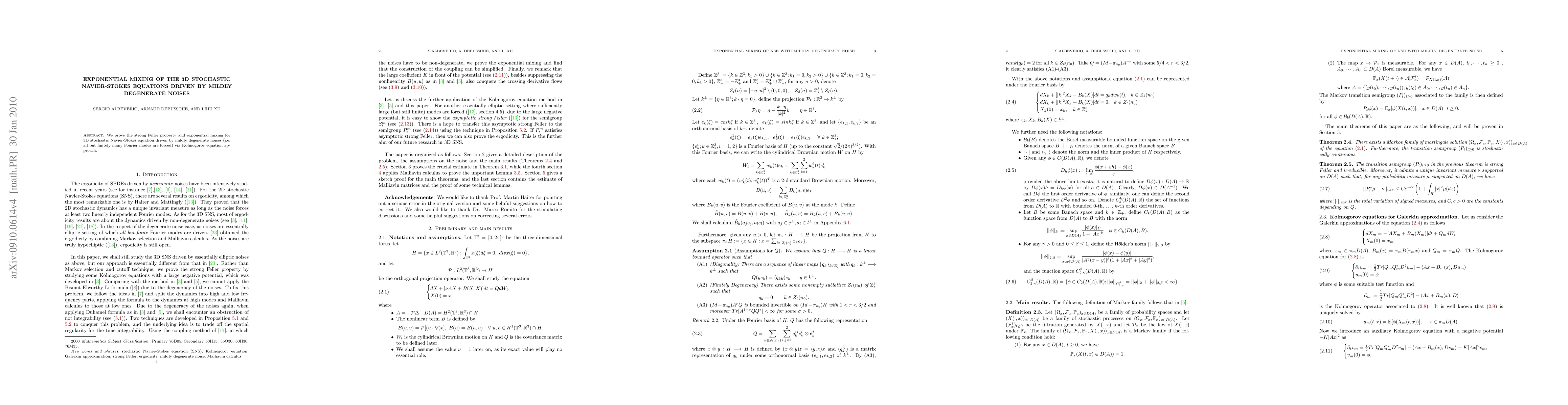 This paper proves the strong Feller property and exponential mixing for the 3D stochastic Navier-Stokes equations driven by mildly degenerate noises, utilizing a Kolmogorov equation approach to handle the complexity of the noise forcing.