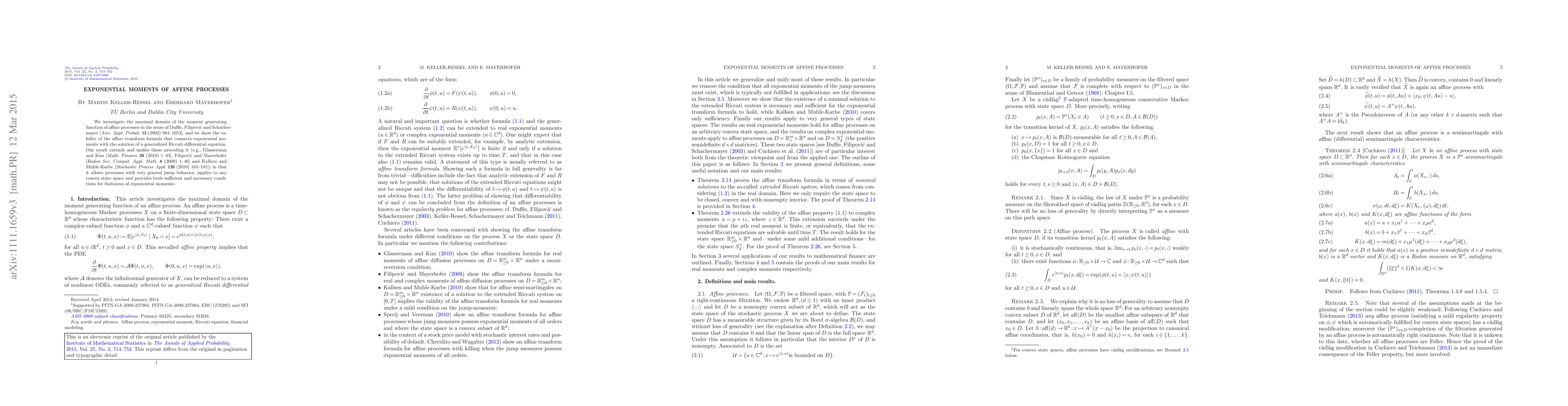 This research derives conditions for the finiteness of exponential moments of affine processes, extending previous works by unifying conditions for various jump behaviors and convex state spaces. It introduces a generalized Riccati differential equation linking exponential moments to the moment generating function, providing both necessary and sufficient conditions for finiteness.