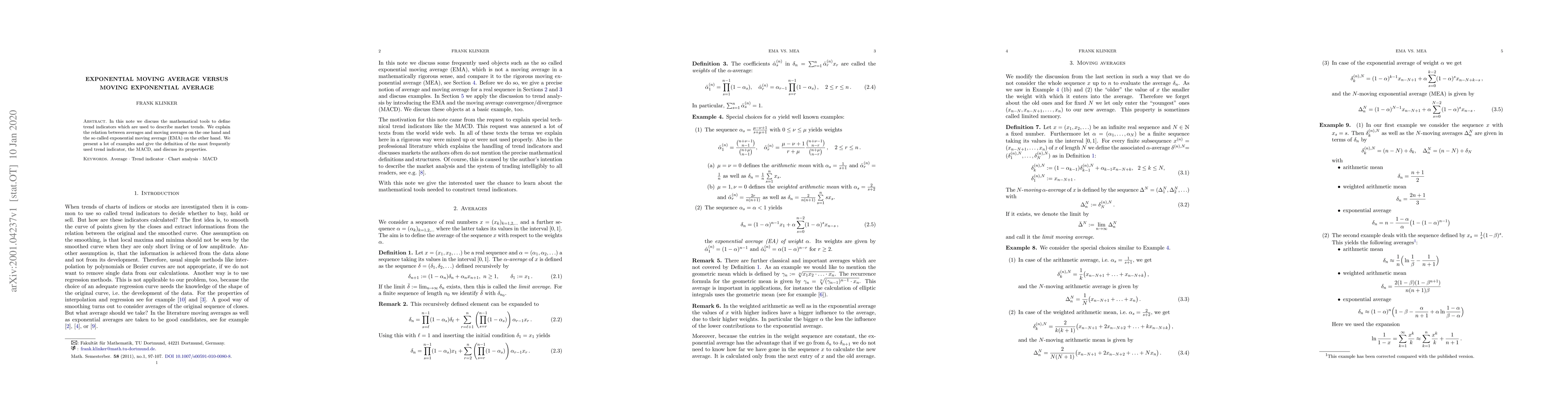 This paper explores the mathematical foundations of trend indicators, specifically comparing traditional moving averages with the exponential moving average (EMA). It defines the EMA and discusses its properties, including the widely used MACD indicator, to illustrate their applications in market trend analysis.