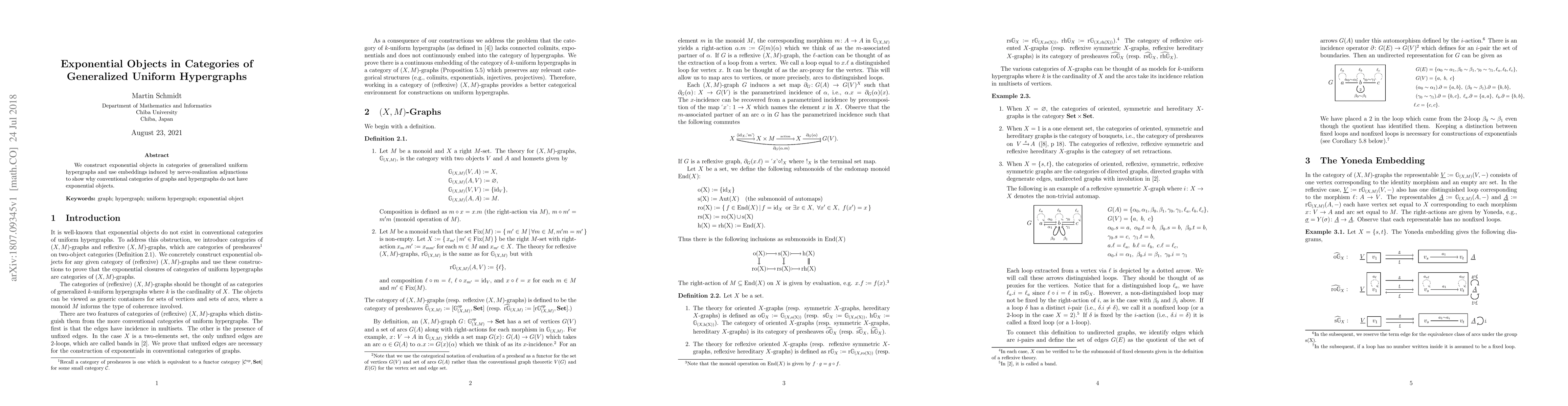 We construct exponential objects in categories of generalized uniform hypergraphs and use embeddings induced by nerve-realization adjunctions to show why conventional categories of graphs and hypergraphs do not have exponential objects.