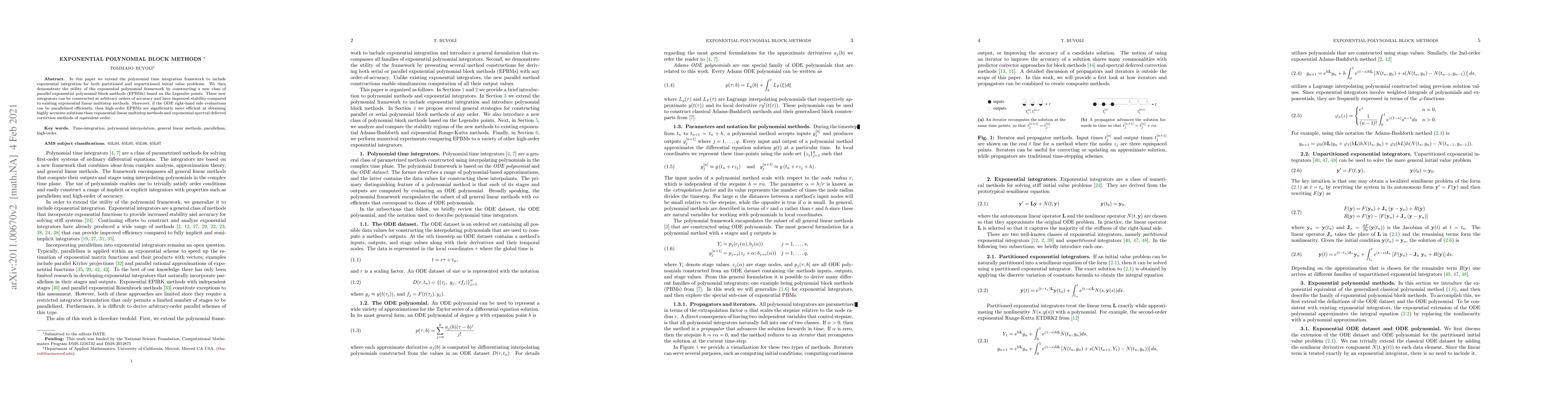 In this paper we extend the polynomial time integration framework to include exponential integration for both partitioned and unpartitioned initial value problems. We then demonstrate the utility of the exponential polynomial framework by constructing a new class of parallel exponential polynomial block methods (EPBMs) based on the Legendre points. These new integrators can be constructed at arbitrary orders of accuracy and have improved stability compared to existing exponential linear multistep methods. Moreover, if the ODE right-hand side evaluations can be parallelized efficiently, then high-order EPBMs are significantly more efficient at obtaining highly accurate solutions than exponential linear multistep methods and exponential spectral deferred correction methods of equivalent order.