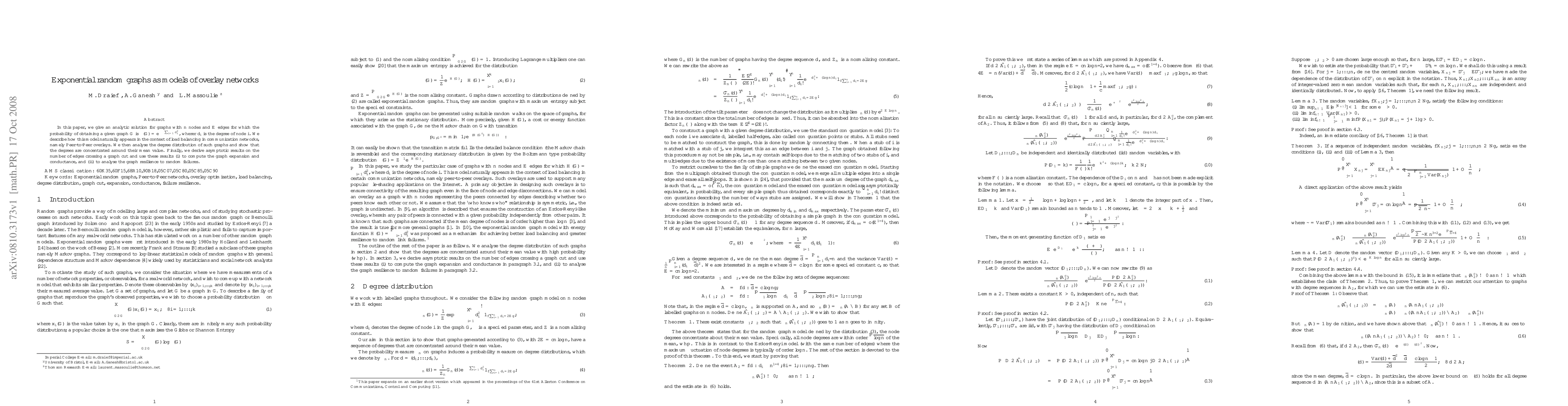 In this paper, we give an analytic solution for graphs with n nodes and E edges for which the probability of obtaining a given graph G is specified in terms of the degree sequence of G. We describe how this model naturally appears in the context of load balancing in communication networks, namely Peer-to-Peer overlays. We then analyse the degree distribution of such graphs and show that the degrees are concentrated around their mean value. Finally, we derive asymptotic results on the number of edges crossing a graph cut and use these results $(i)$ to compute the graph expansion and conductance, and $(ii)$ to analyse the graph resilience to random failures.