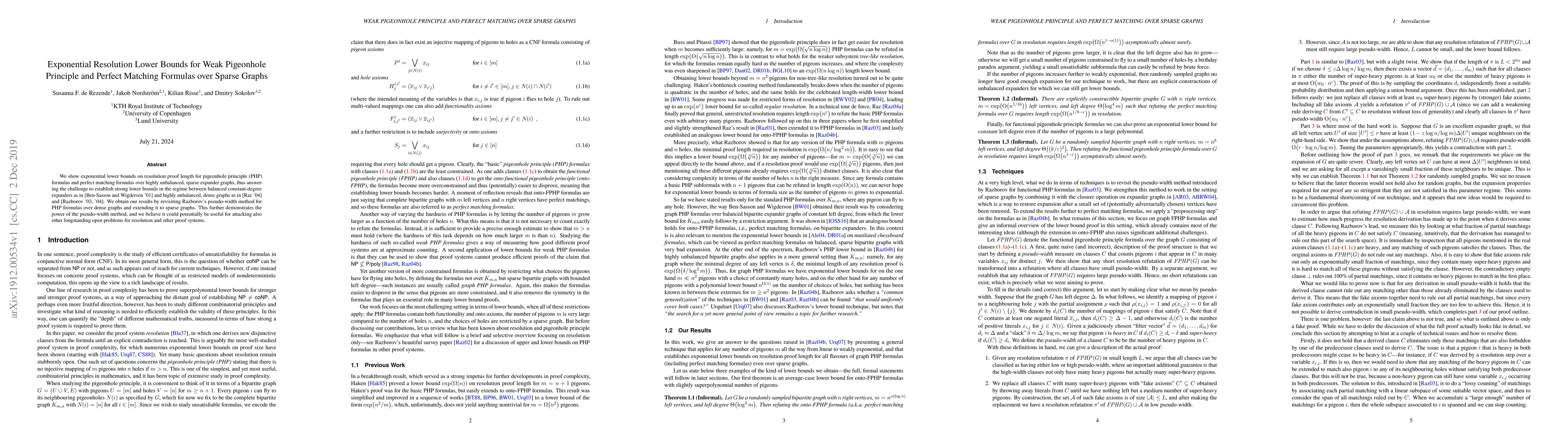 We show exponential lower bounds on resolution proof length for pigeonhole principle (PHP) formulas and perfect matching formulas over highly unbalanced, sparse expander graphs, thus answering the challenge to establish strong lower bounds in the regime between balanced constant-degree expanders as in [Ben-Sasson and Wigderson '01] and highly unbalanced, dense graphs as in [Raz '04] and [Razborov '03, '04]. We obtain our results by revisiting Razborov's pseudo-width method for PHP formulas over dense graphs and extending it to sparse graphs. This further demonstrates the power of the pseudo-width method, and we believe it could potentially be useful for attacking also other longstanding open problems for resolution and other proof systems.