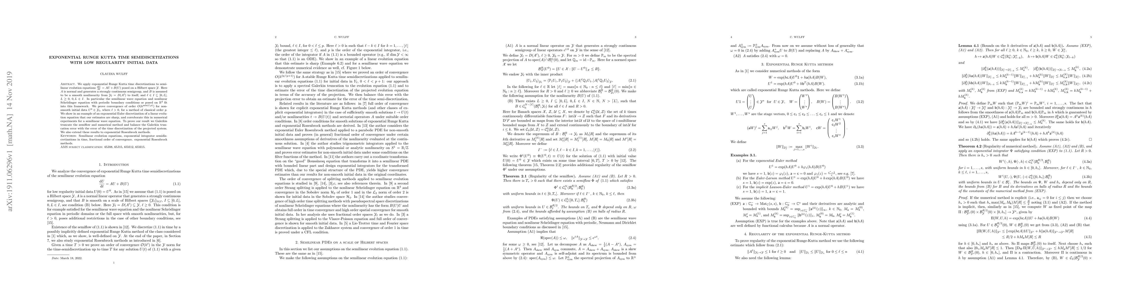 We apply exponential Runge Kutta time discretizations to semilinear evolution equations $\frac { {\rm d} U}{{\rm d} t}=AU+B(U)$ posed on a Hilbert space ${\mathcal Y}$. Here $A$ is normal and generates a strongly continuous semigroup, and $B$ is assumed to be a smooth nonlinearity from ${\mathcal Y}_\ell = D(A^\ell)$ to itself, and $\ell \in I \subseteq [0,L]$, $L \geq 0$, $0,L \in I$. In particular the semilinear wave equation and nonlinear Schr\"odinger equation with periodic boundary conditions or posed on ${\mathbb R}^d$ fit into this framework. We prove convergence of order $O(h^{\min(\ell,p)})$ for non-smooth initial data $U^0\in{\mathcal Y}_\ell$, where $\ell >0$, for a method of classical order $p$. We show in an example of an exponential Euler discretization of a linear evolution equation that our estimates are sharp, and corroborate this in numerical experiments for a semilinear wave equation. To prove our result we Galerkin truncate the semiflow and numerical method and balance the Galerkin truncation error with the error of the time discretization of the projected system. We also extend these results to exponential Rosenbrock methods.