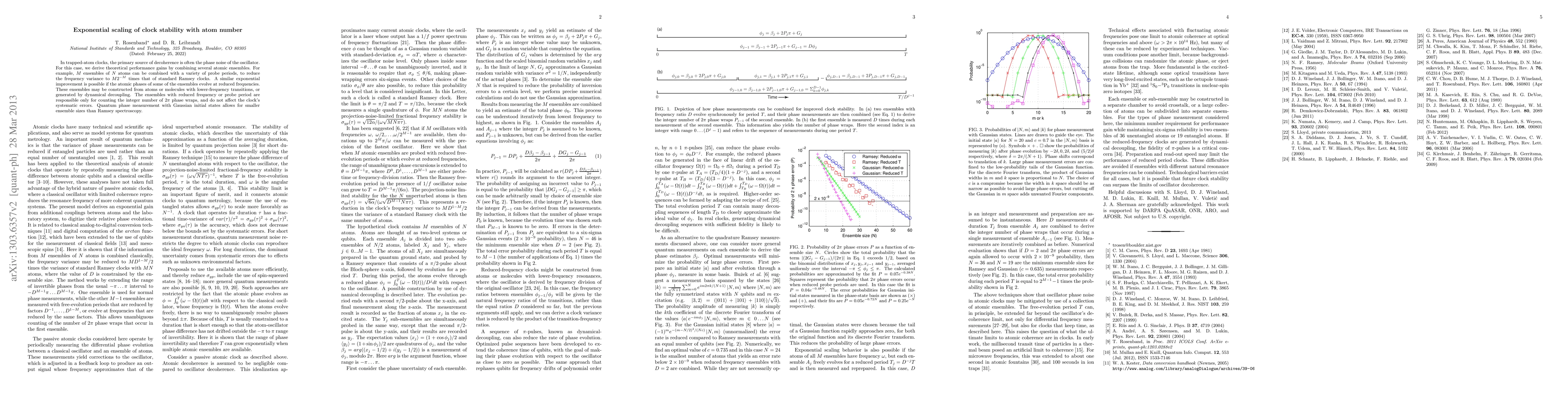 In trapped-atom clocks, the primary source of decoherence is often the phase noise of the oscillator. For this case, we derive theoretical performance gains by combining several atomic ensembles. For example, M ensembles of N atoms can be combined with a variety of probe periods, to reduce the frequency variance to M 2^-M times that of standard Ramsey clocks. A similar exponential improvement is possible if the atomic phases of some of the ensembles evolve at reduced frequencies. These ensembles may be constructed from atoms or molecules with lower-frequency transitions, or generated by dynamical decoupling. The ensembles with reduced frequency or probe period are responsible only for counting the integer number of 2 pi phase wraps, and do not affect the clock's systematic errors. Quantum phase measurement with Gaussian initial states allows for smaller ensemble sizes than Ramsey spectroscopy.