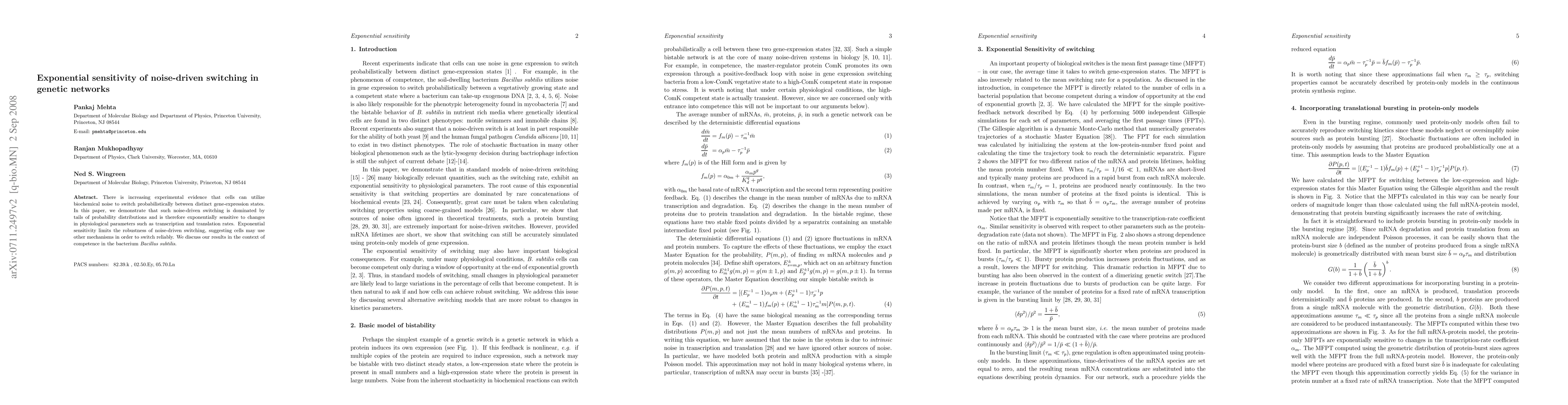 Noise-driven switching in genetic networks is exponentially sensitive to physiological parameters, limiting robustness, while mRNA lifetimes can still allow accurate protein-only modeling under short conditions.