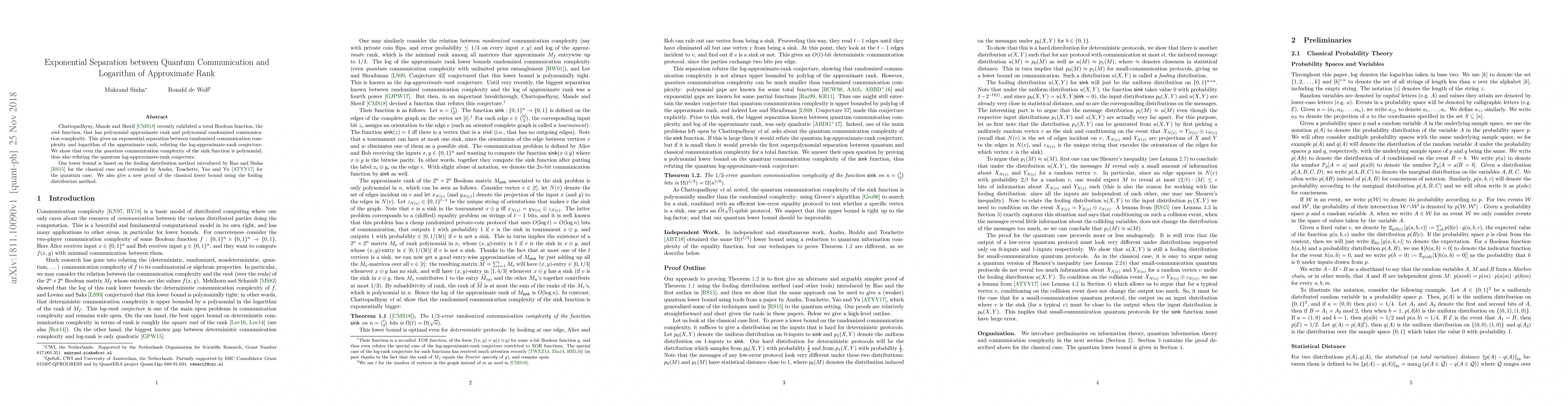 This paper demonstrates an exponential separation between quantum communication complexity and the logarithm of approximate rank for the sink function, refuting the quantum log-approximate-rank conjecture. The authors utilize the fooling distribution method to establish their lower bounds, extending previous classical and quantum results.