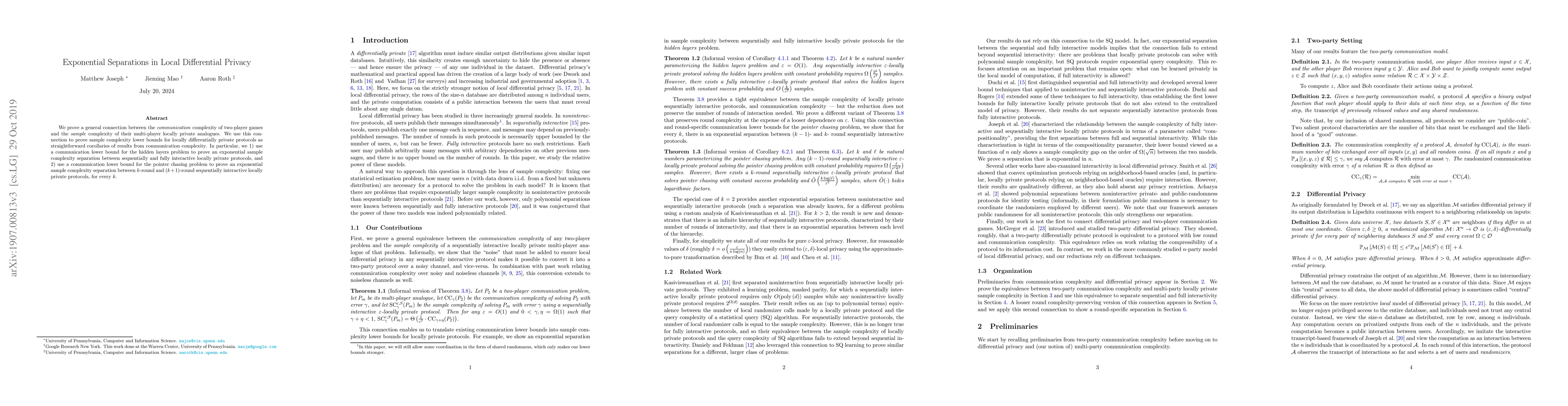We prove a general connection between the communication complexity of two-player games and the sample complexity of their multi-player locally private analogues. We use this connection to prove sample complexity lower bounds for locally differentially private protocols as straightforward corollaries of results from communication complexity. In particular, we 1) use a communication lower bound for the hidden layers problem to prove an exponential sample complexity separation between sequentially and fully interactive locally private protocols, and 2) use a communication lower bound for the pointer chasing problem to prove an exponential sample complexity separation between $k$ round and $k+1$ round sequentially interactive locally private protocols, for every $k$.