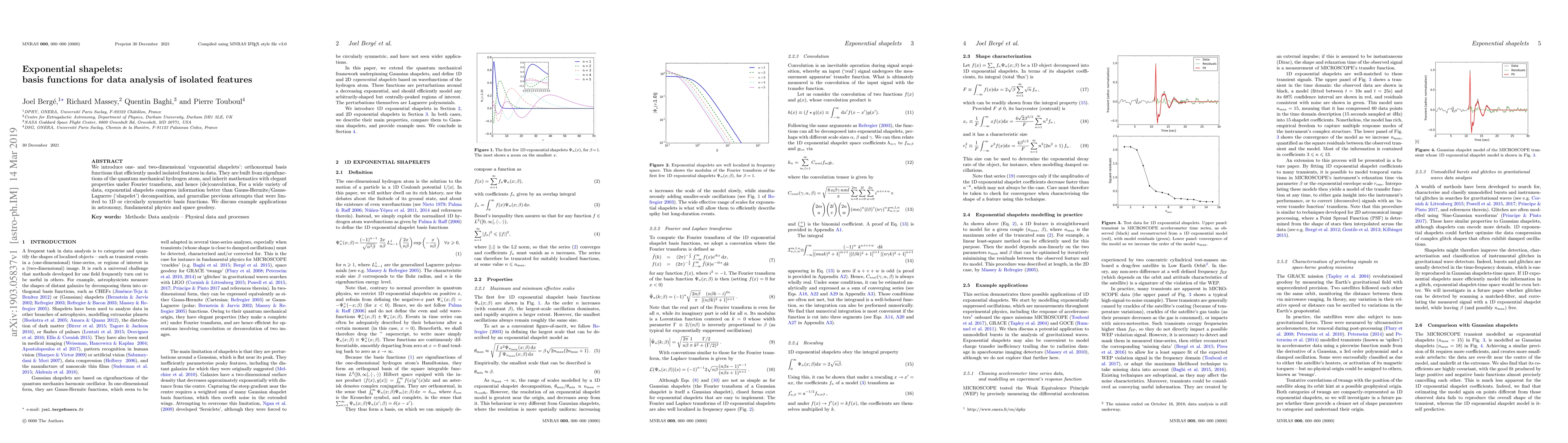 This paper introduces exponential shapelets, orthonormal basis functions derived from the quantum mechanical hydrogen atom, which efficiently model isolated features in data. They outperform Gauss-Hermite/Gauss-Laguerre shapelets in information compression and generalize to higher dimensions, with applications in astronomy, fundamental physics, and space geodesy.