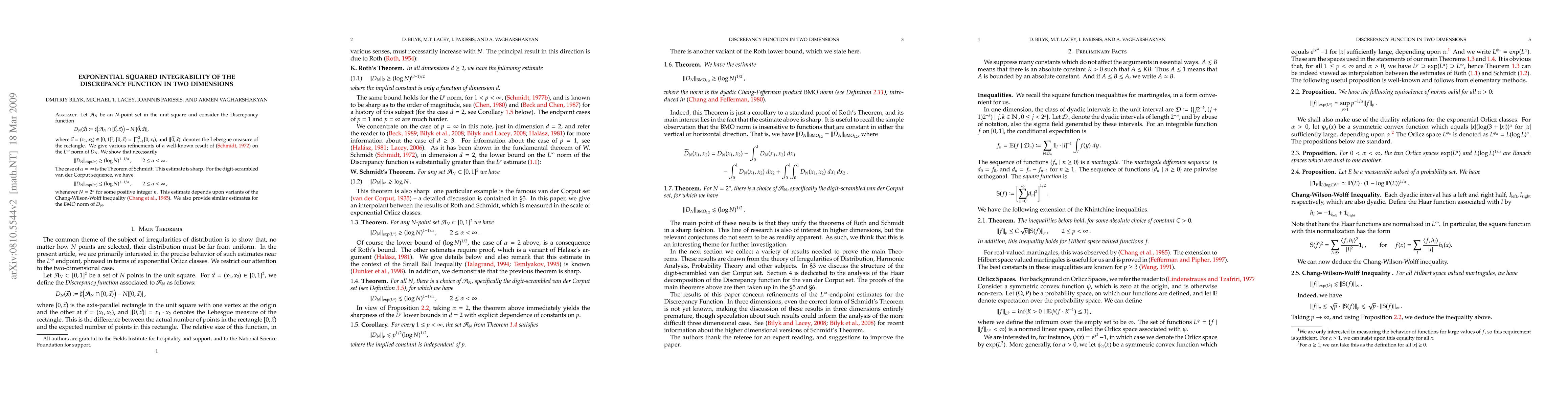This paper presents sharp estimates for the BMO norm and exponential squared Orlicz norm of the Discrepancy function D_N(x) in two dimensions, proving bounds like ||D_N||_(expL^2) >c(logN)^(1/2). It also demonstrates the tightness of these bounds using a digit scrambled van der Corput set for N=2^n, unifying previous results of Roth and Schmidt.