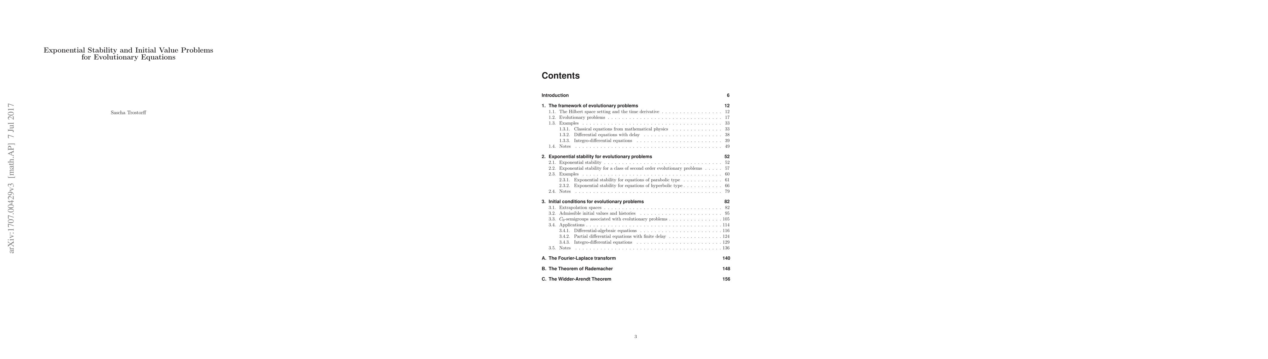 In this thesis we consider so-called linear evolutionary problems, a class of linear partial differential equations covering classical elliptic, parabolic and hyperbolic equations from mathematical physics as well as classes of integro-differenital equations, fractional differential equations and delay equations. We address the well-posedness of the problems in a pure Hilbert space setting. Moreover, the exponential stability and the regularity of the problems are studied. In particular, a Hille-Yosida type result is proved, to obtain a strongly continuous semigroup on a suitable state space consisting of admissible initial values and pre-histories. The results are illustrated by various examples.
