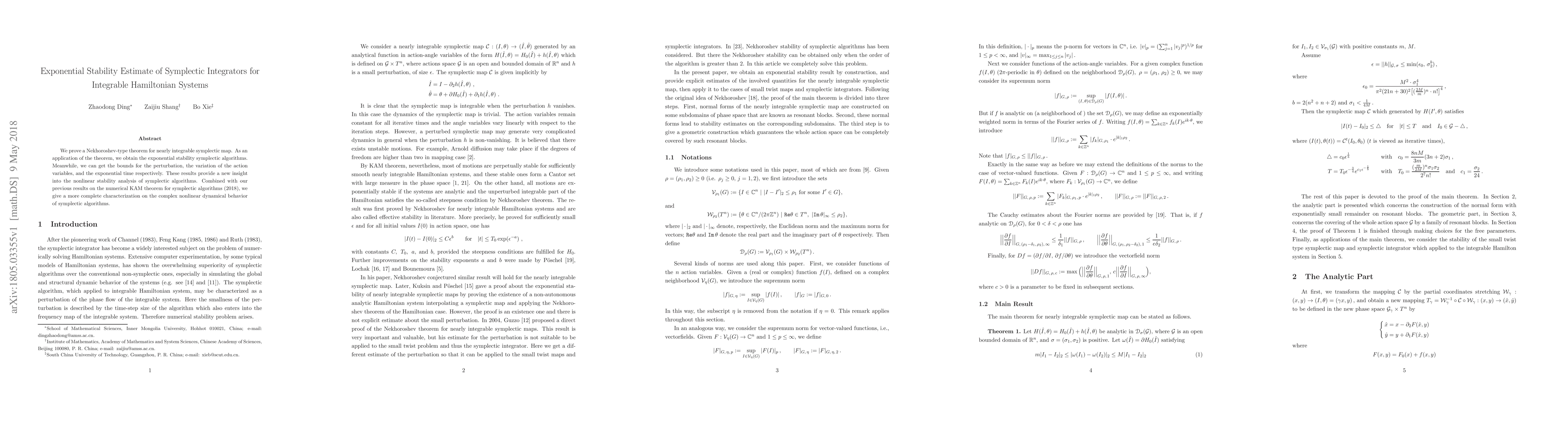 This paper proves a Nekhoroshev-type theorem for nearly integrable symplectic maps, establishing exponential stability for symplectic algorithms and providing bounds for perturbation, action variables' variation, and exponential time. These findings enhance the understanding of nonlinear stability in symplectic algorithms.