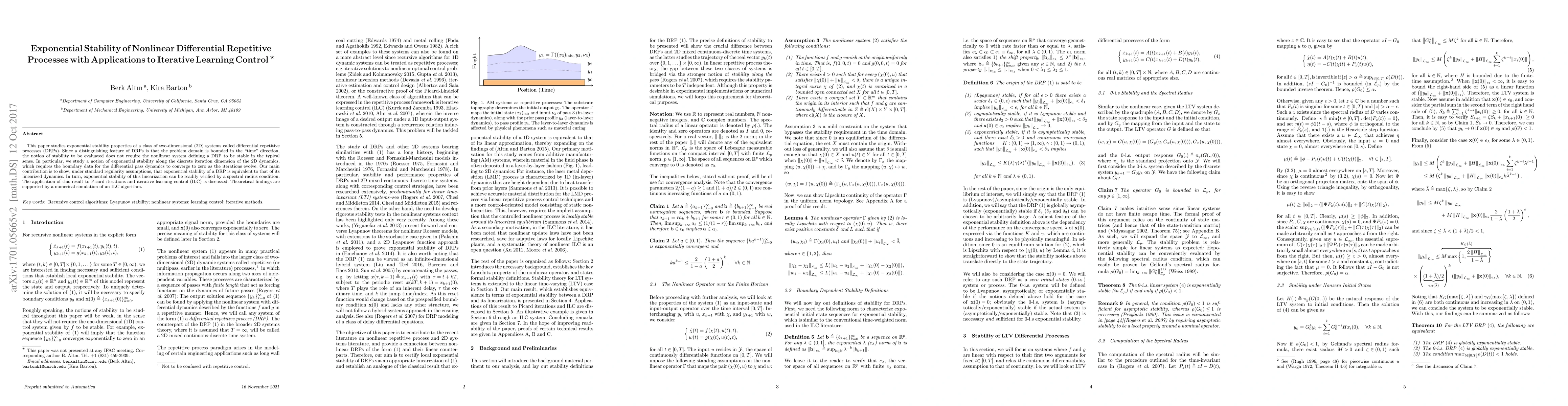 This research demonstrates that the exponential stability of a special class of 2D systems, called differential repetitive processes, can be verified by analyzing a simple spectral condition. These findings help improve the design and analysis of iterative learning control algorithms.