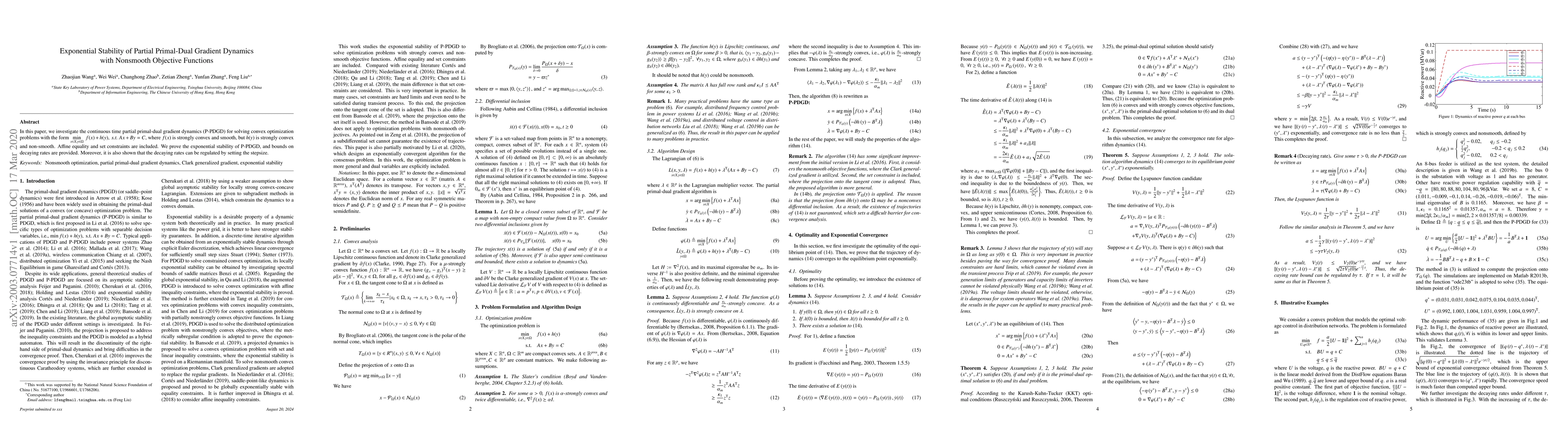 This paper investigates the exponential stability of partial primal-dual gradient dynamics (P-PDGD) for solving convex optimization problems with nonsmooth objective functions. It proves the exponential stability of P-PDGD and provides bounds on the decaying rates, which can be regulated by adjusting the stepsize.