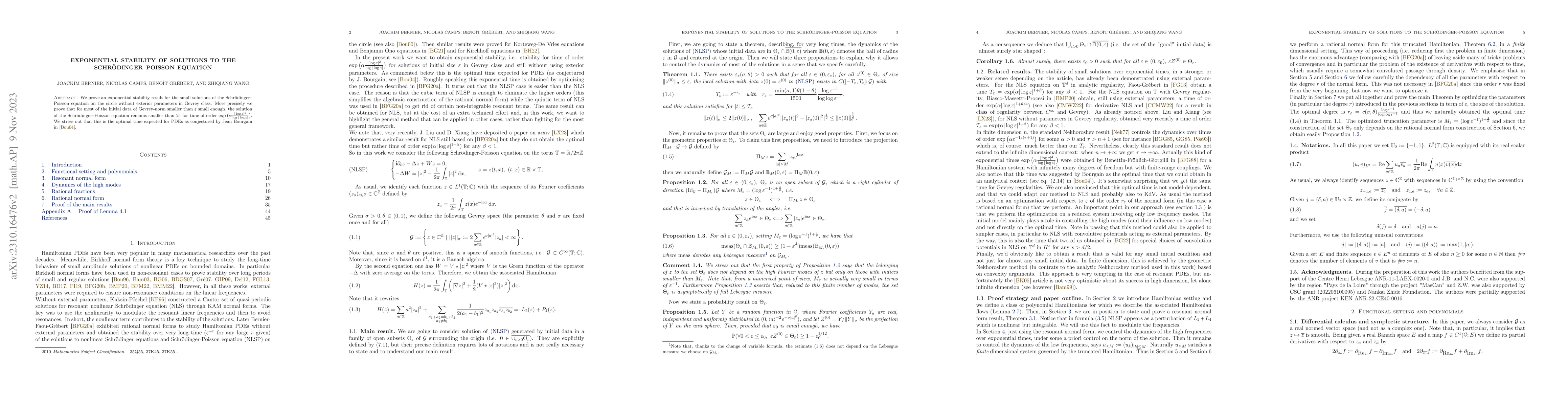This paper proves exponential stability for small solutions of the Schrödinger-Poisson equation on the circle, showing that initial data of sufficiently small Gevrey norm remains bounded for an optimal time scale conjectured by Jean Bourgain. The stability holds for times of order exp(α|log ε|^2 / log|log ε|).