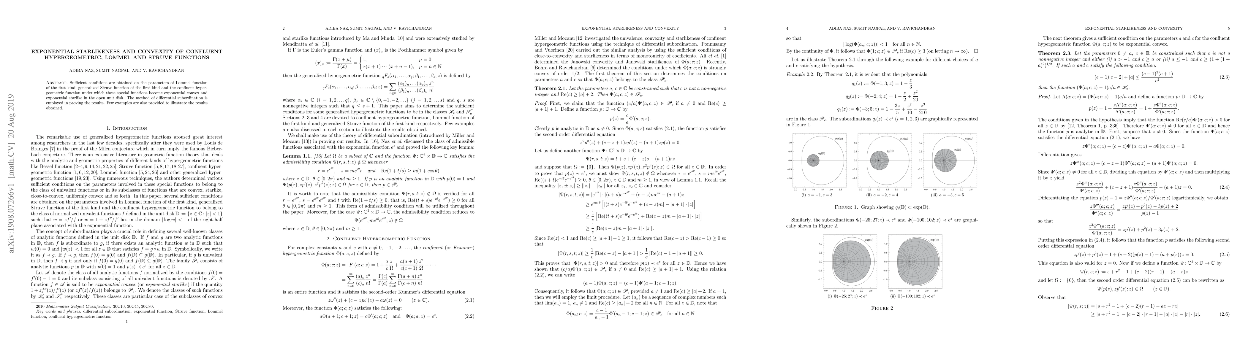 This paper provides sufficient conditions for the Lommel, generalized Struve, and confluent hypergeometric functions to exhibit exponential convexity and starlikeness in the unit disk, using differential subordination techniques. Examples are included to demonstrate the practical application of these conditions.