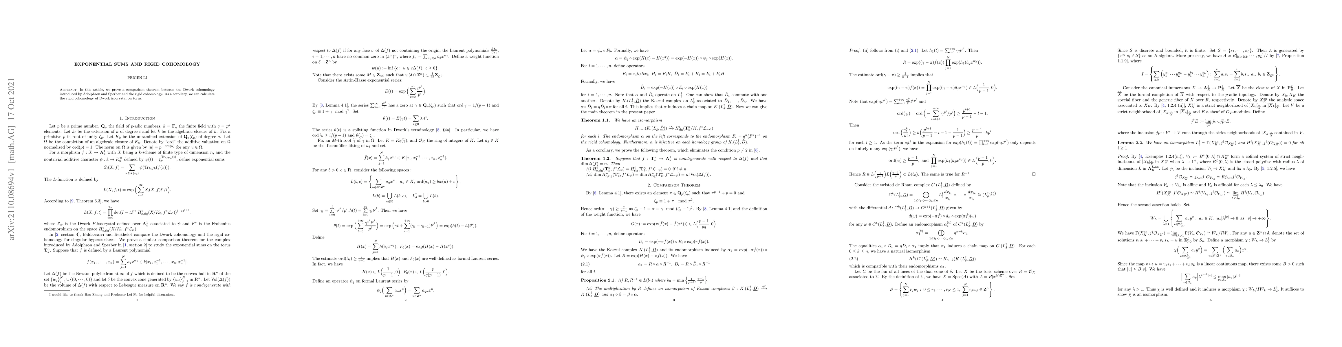 In this article, we prove a comparison theorem between the Dwork cohomology introduced by Adolphson and Sperber and the rigid cohomology. As a corollary, we can calculate the rigid cohomology of Dwork isocrystal on torus.