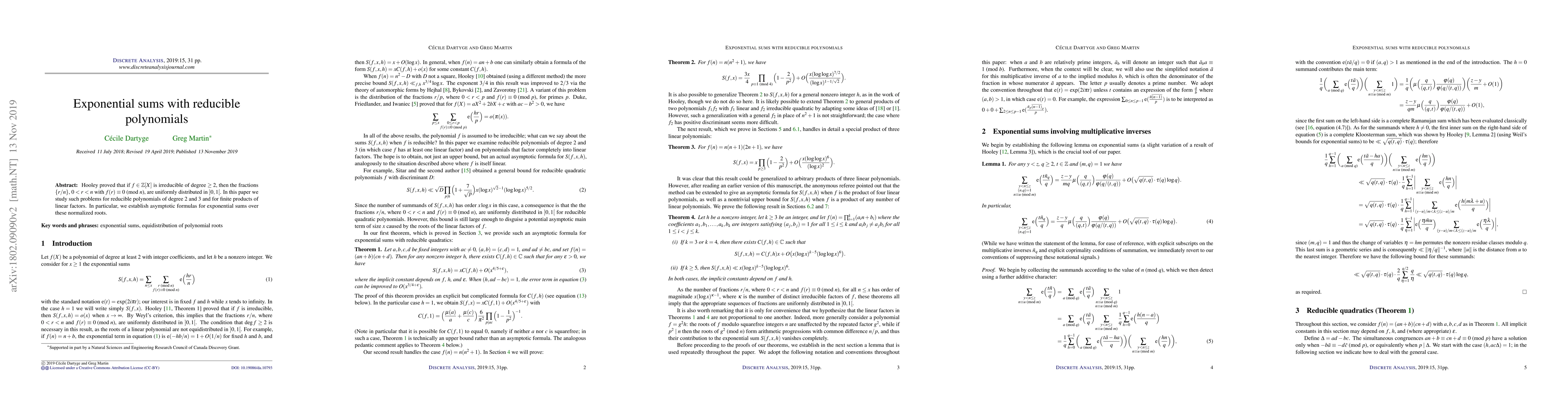 This paper investigates the distribution of roots of reducible polynomials of degrees 2 and 3, as well as finite products of linear factors, extending Hooley's results for irreducible polynomials. It establishes asymptotic formulas for exponential sums over these normalized roots.