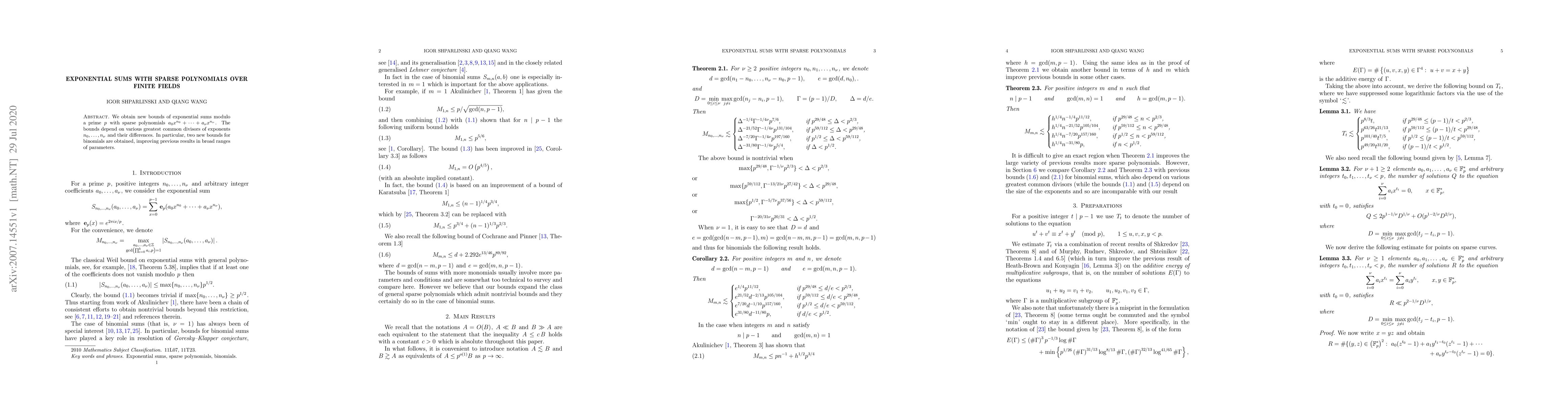 This paper presents new bounds for exponential sums involving sparse polynomials over finite fields, focusing on the greatest common divisors of polynomial exponents and their differences. The results notably improve previous bounds for binomials across a wide range of parameters.