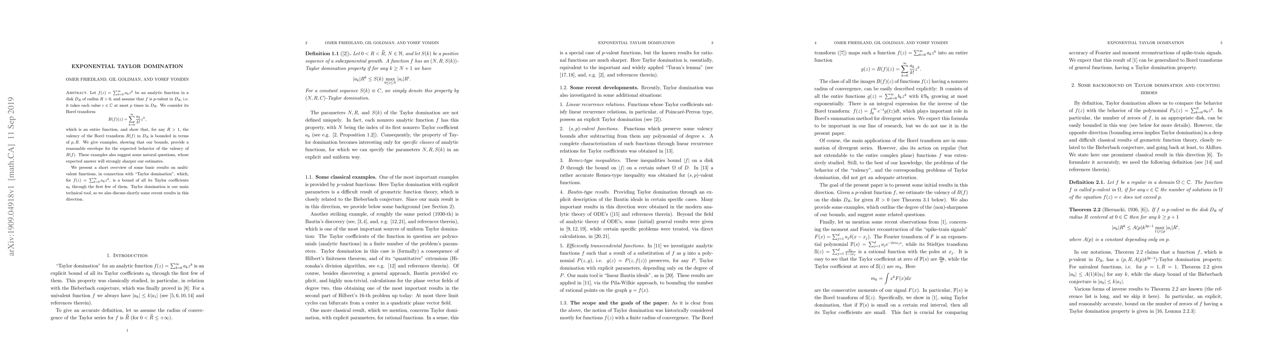 Let $f(z) = \sum_{k=0}^\infty a_k z^k$ be an analytic function in a disk $D_R$ of radius $R>0$, and assume that $f$ is $p$-valent in $D_R$, i.e. it takes each value $c\in{\mathbb C}$ at most $p$ times in $D_R$. We consider its Borel transform $$ B(f)(z) = \sum_{k=0}^\infty \frac{a_k}{k!} z^k , $$ which is an entire function, and show that, for any $R>1$, the valency of the Borel transform $B(f)$ in $D_R$ is bounded in terms of $p,R$. We give examples, showing that our bounds, provide a reasonable envelope for the expected behavior of the valency of $B(f)$. These examples also suggest some natural questions, whose expected answer will strongly sharper our estimates. We present a short overview of some basic results on multi-valent functions, in connection with "Taylor domination", which, for $f(z) = \sum_{k=0}^\infty a_k z^k$, is a bound of all its Taylor coefficients $a_k$ through the first few of them. Taylor domination is our main technical tool, so we also discuss shortly some recent results in this direction.