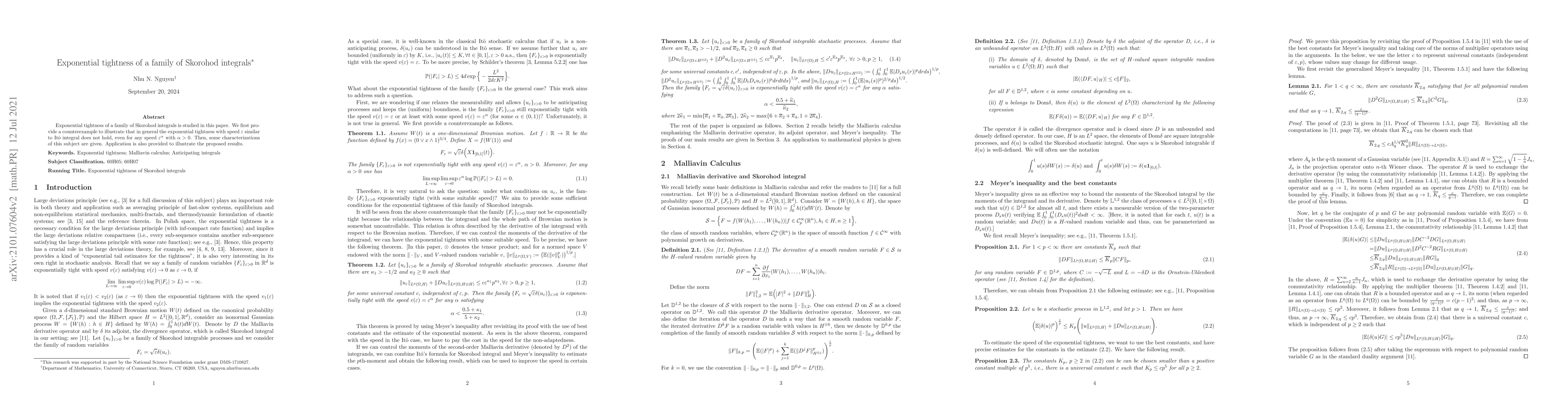 This paper investigates the exponential tightness of a family of Skorohod integrals, demonstrating that general exponential tightness does not hold even for modified speeds, and provides characterizations and applications of the findings.