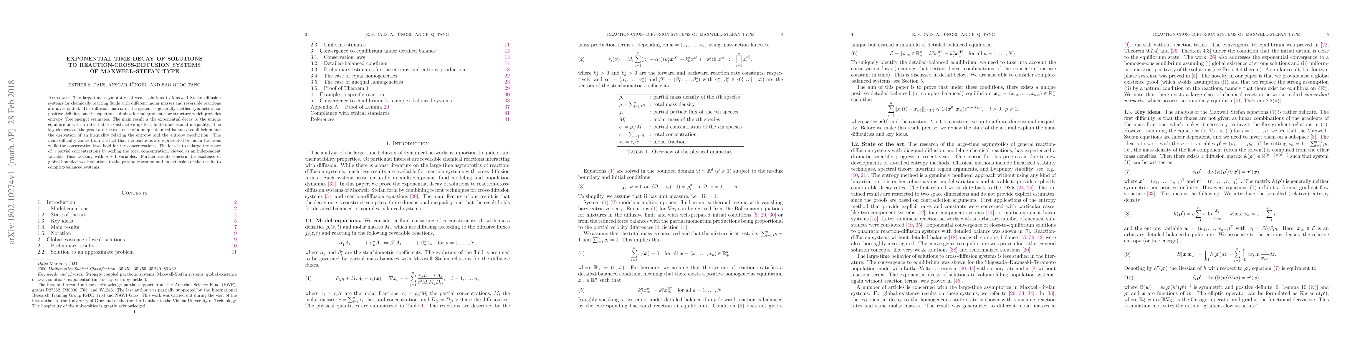 A study on chemically reacting fluids finds that solutions to reaction-cross-diffusion systems decay exponentially over time, with a rate related to the entropy of the system.