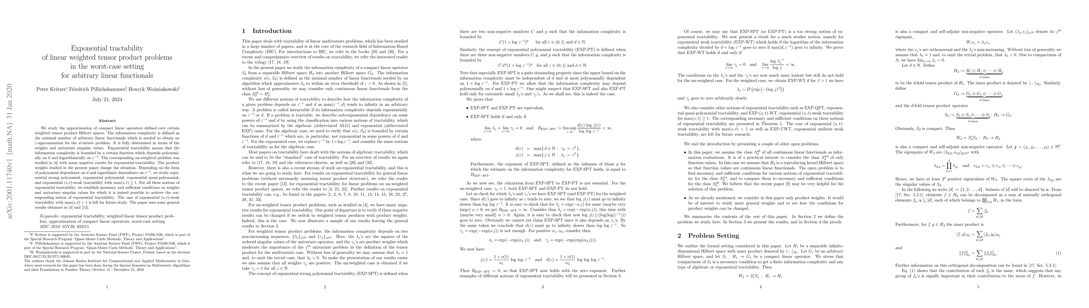 This paper investigates the information complexity for approximating compact linear operators in weighted tensor product Hilbert spaces, showing exponential tractability under certain conditions. It establishes necessary and sufficient conditions on weights and singular values for various notions of exponential tractability, contrasting with previous studies on un-weighted problems.