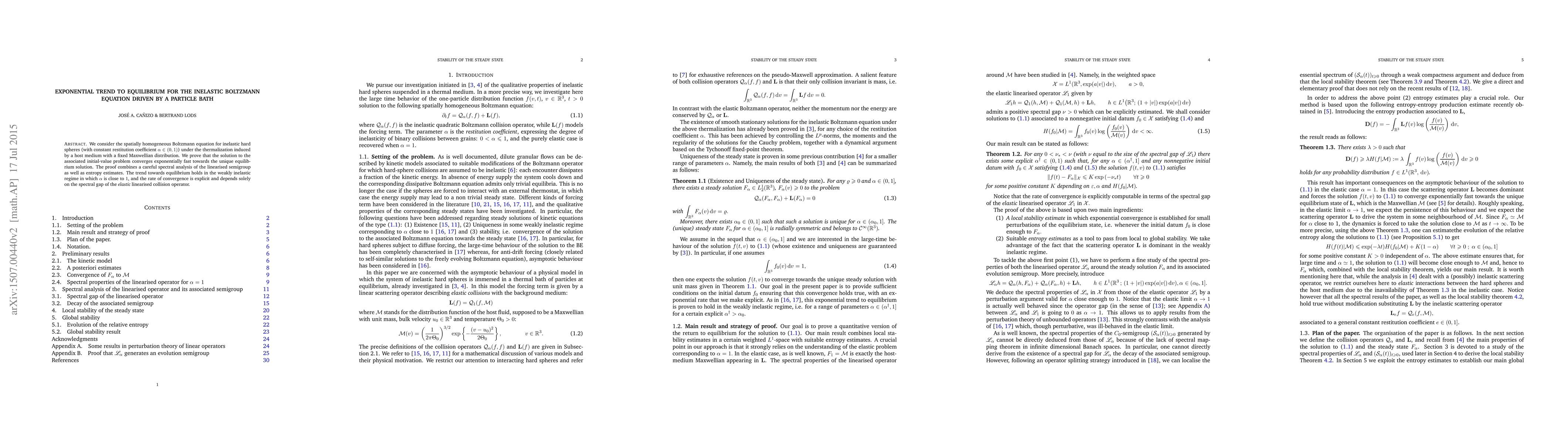 We consider the spatially homogeneous Boltzmann equation for inelastic hard spheres (with constant restitution coefficient $\alpha \in (0,1)$) under the thermalization induced by a host medium with a fixed Maxwellian distribution. We prove that the solution to the associated initial-value problem converges exponentially fast towards the unique equilibrium solution. The proof combines a careful spectral analysis of the linearised semigroup as well as entropy estimates. The trend towards equilibrium holds in the weakly inelastic regime in which $\alpha$ is close to $1$, and the rate of convergence is explicit and depends solely on the spectral gap of the \emph{elastic} linearised collision operator.