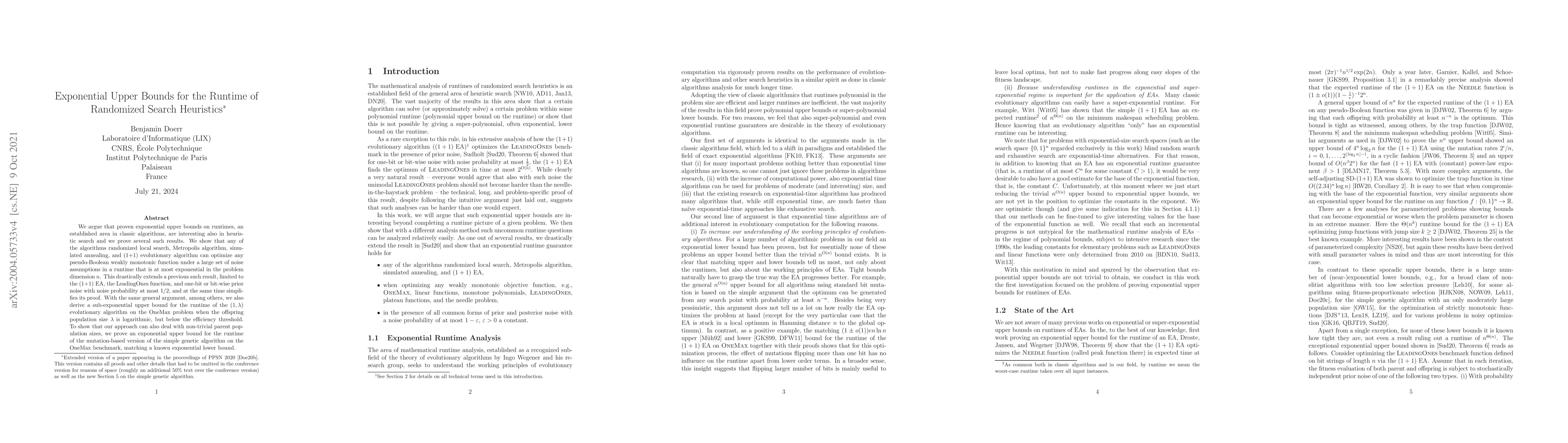 This paper establishes exponential upper bounds on the runtimes of several randomized search heuristics, including randomized local search, Metropolis algorithm, simulated annealing, and evolutionary algorithms. It extends previous results and simplifies proofs, showing that these algorithms can optimize pseudo-Boolean functions under various noise conditions in exponential time relative to the problem dimension.