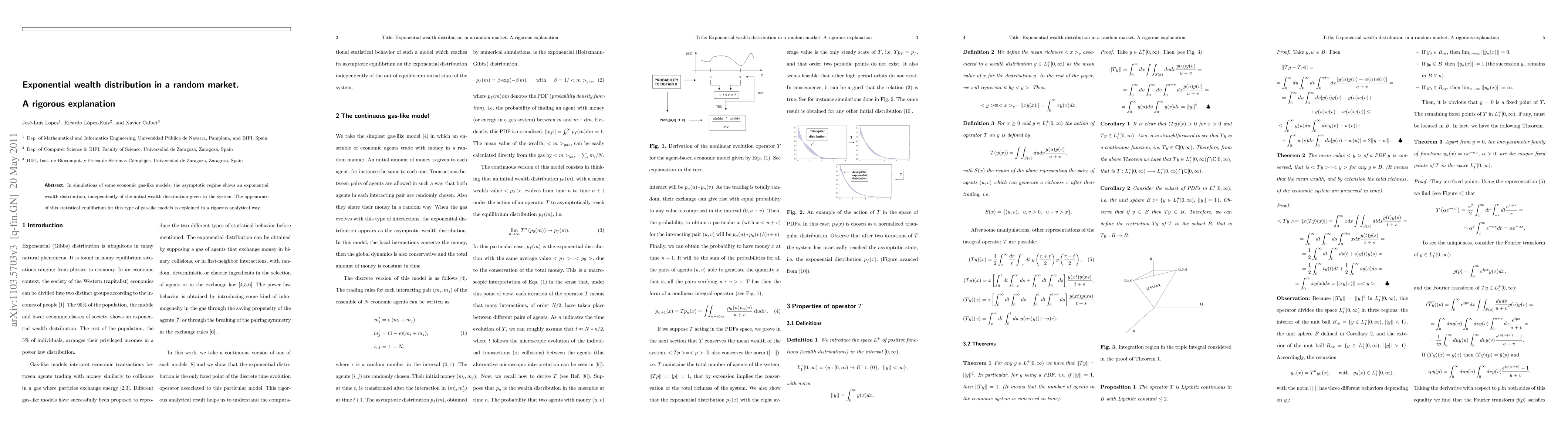 In simulations of some economic gas-like models, the asymptotic regime shows an exponential wealth distribution, independently of the initial wealth distribution given to the system. The appearance of this statistical equilibrium for this type of gas-like models is explained in a rigorous analytical way.