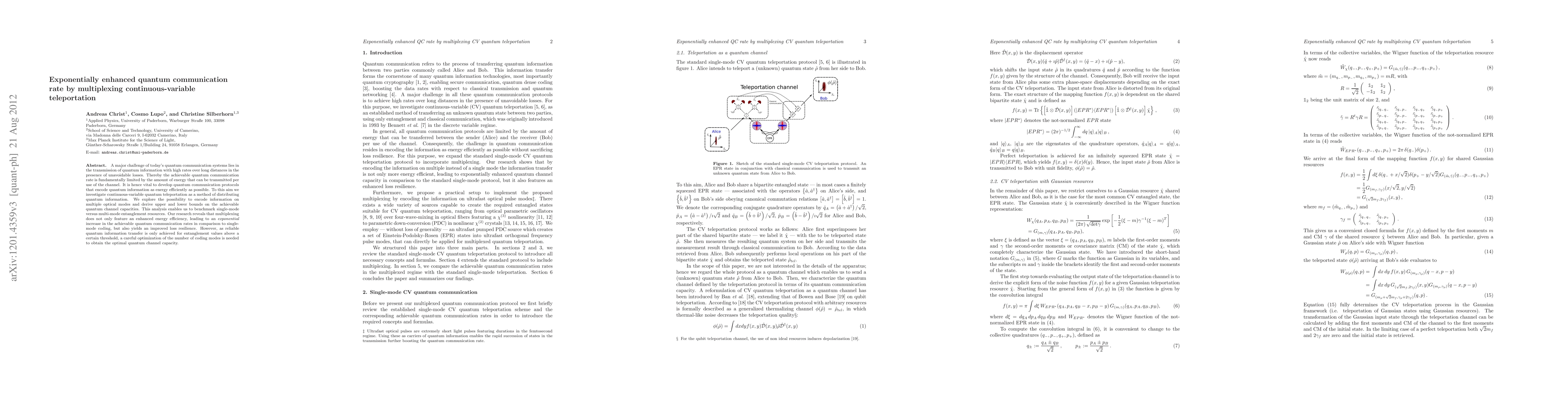 A major challenge of today's quantum communication systems lies in the transmission of quantum information with high rates over long distances in the presence of unavoidable losses. Thereby the achievable quantum communication rate is fundamentally limited by the amount of energy that can be transmitted per use of the channel. It is hence vital to develop quantum communication protocols that encode quantum information as energy efficiently as possible. To this aim we investigate continuous-variable quantum teleportation as a method of distributing quantum information. We explore the possibility to encode information on multiple optical modes and derive upper and lower bounds on the achievable quantum channel capacities. This analysis enables us to benchmark single-mode versus multi-mode entanglement resources. Our research reveals that multiplexing does not only feature an enhanced energy efficiency, leading to an exponential increase in the achievable quantum communication rates in comparison to single-mode coding, but also yields an improved loss resilience. However, as reliable quantum information transfer is only achieved for entanglement values above a certain threshold, a careful optimization of the number of coding modes is needed to obtain the optimal quantum channel capacity.