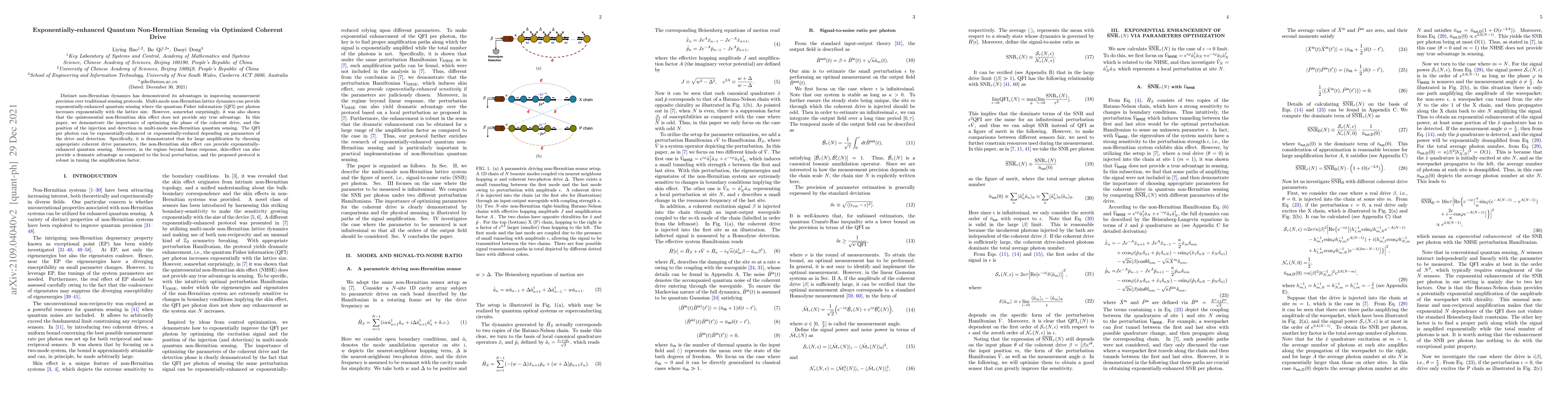 This paper explores exponentially-enhanced quantum sensing in multi-mode non-Hermitian systems, showing that optimizing coherent drive parameters can significantly boost the quantum Fisher information per photon. While the non-Hermitian skin effect alone does not inherently improve sensing, it can provide substantial benefits when combined with optimal drive and detection configurations.