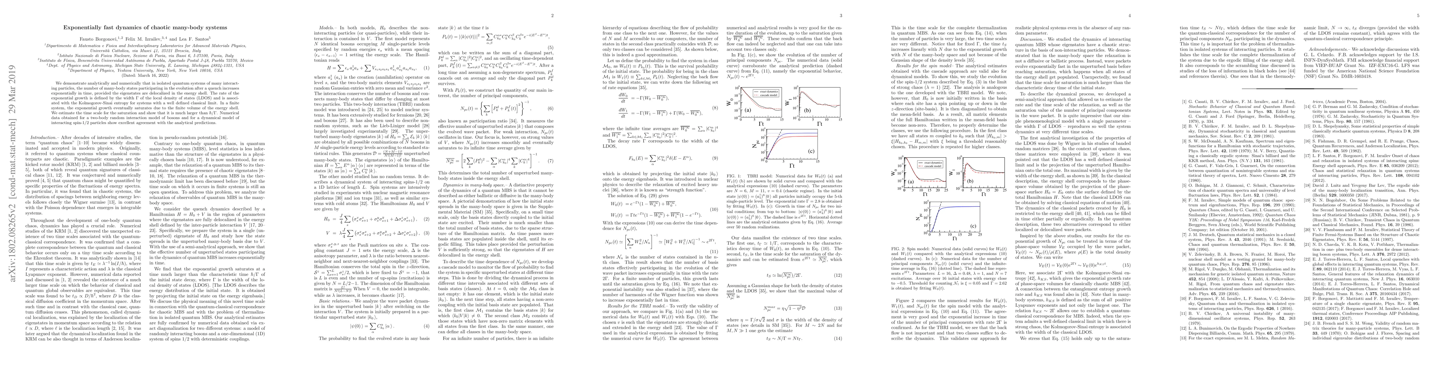 Research shows that in many-body systems of interacting particles, the number of participating states grows exponentially with time, driven by a measure called the Kolmogorov-Sinai entropy, related to the system's local density of states.