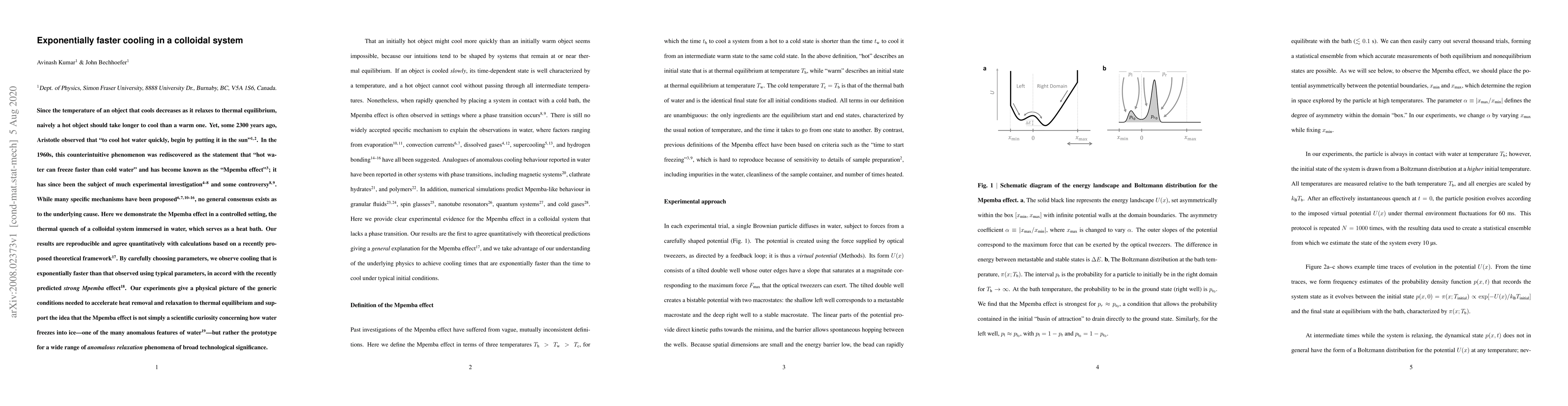 As the temperature of a cooling object decreases as it relaxes to thermal equilibrium, it is intuitively assumed that a hot object should take longer to cool than a warm one. Yet, some 2,300 years ago, Aristotle observed that "to cool hot water quickly, begin by putting it in the sun". In the 1960s, this counterintuitive phenomenon was rediscovered as the statement that "hot water can freeze faster than cold water" and has become known as the Mpemba effect; it has since been the subject of much experimental investigation and some controversy. Although many specific mechanisms have been proposed, no general consensus exists as to the underlying cause. Here we demonstrate the Mpemba effect in a controlled setting - the thermal quench of a colloidal system immersed in water, which serves as a heat bath. Our results are reproducible and agree quantitatively with calculations based on a recently proposed theoretical framework. By carefully choosing parameters, we observe cooling that is exponentially faster than that observed using typical parameters, in accord with the recently predicted strong Mpemba effect. Our experiments outline the generic conditions needed to accelerate heat removal and relaxation to thermal equilibrium and support the idea that the Mpemba effect is not simply a scientific curiosity concerning how water freezes into ice - one of the many anomalous features of water - but rather the prototype for a wide range of anomalous relaxation phenomena of broad technological importance.