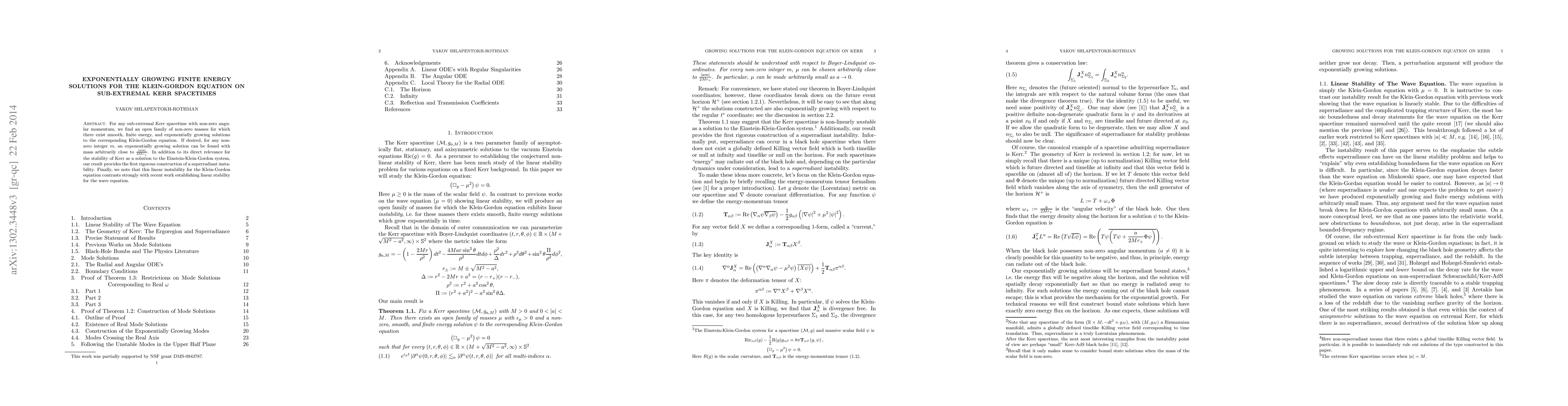 This paper identifies an open family of masses yielding exponentially growing, finite energy solutions to the Klein-Gordon equation in sub-extremal Kerr spacetimes, demonstrating the first rigorous construction of a superradiant instability. This contrasts with recent findings of linear stability for the wave equation.