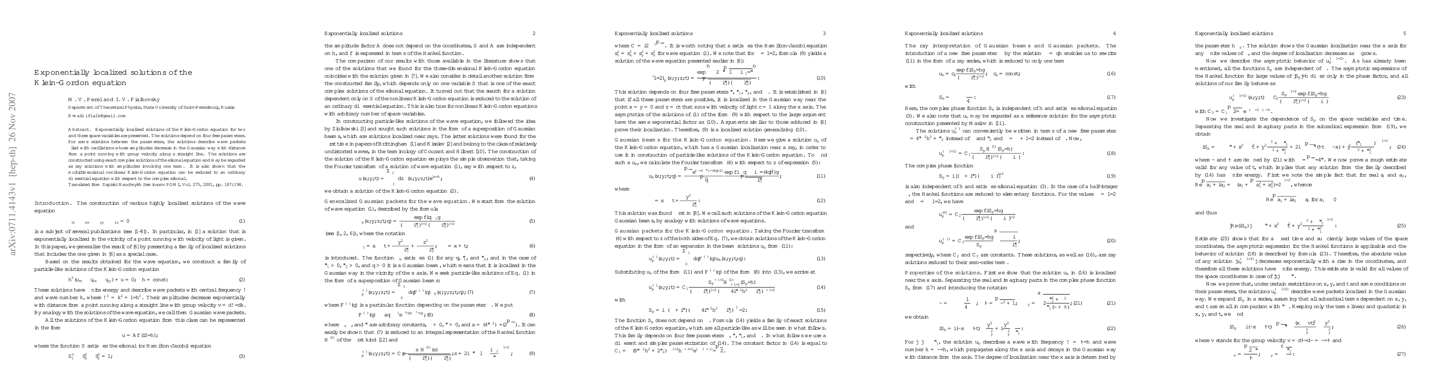 This paper presents exponentially localized solutions for the Klein-Gordon equation in two and three dimensions, characterized by four free parameters. These solutions describe wave packets with Gaussian amplitude decay and are constructed using exact complex solutions of the eikonal equation.